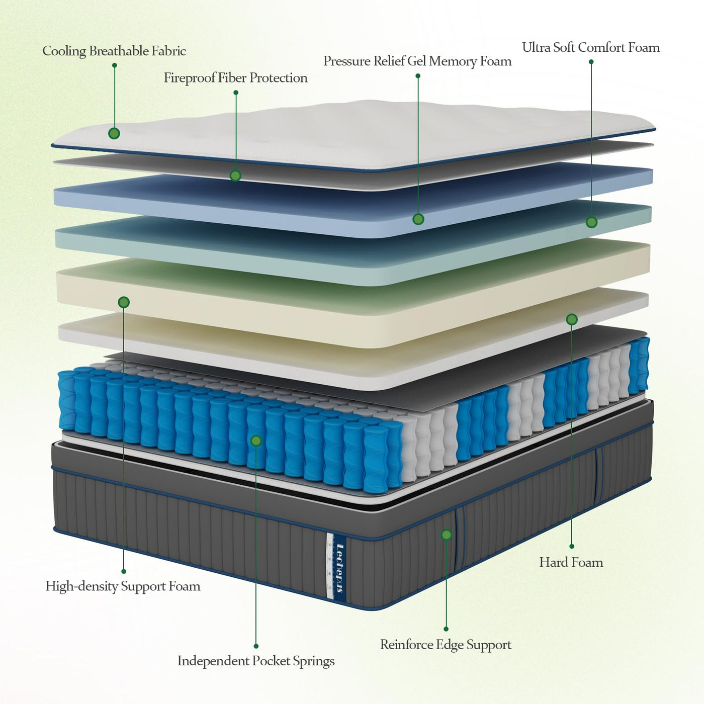- Q: What are the main features of the Lechepus mattress? A: The Lechepus mattress features a 14-inch cooling gel memory foam design, a 7-zone hybrid support system, a medium plush feel, and a convenient mattress-in-a-box delivery.