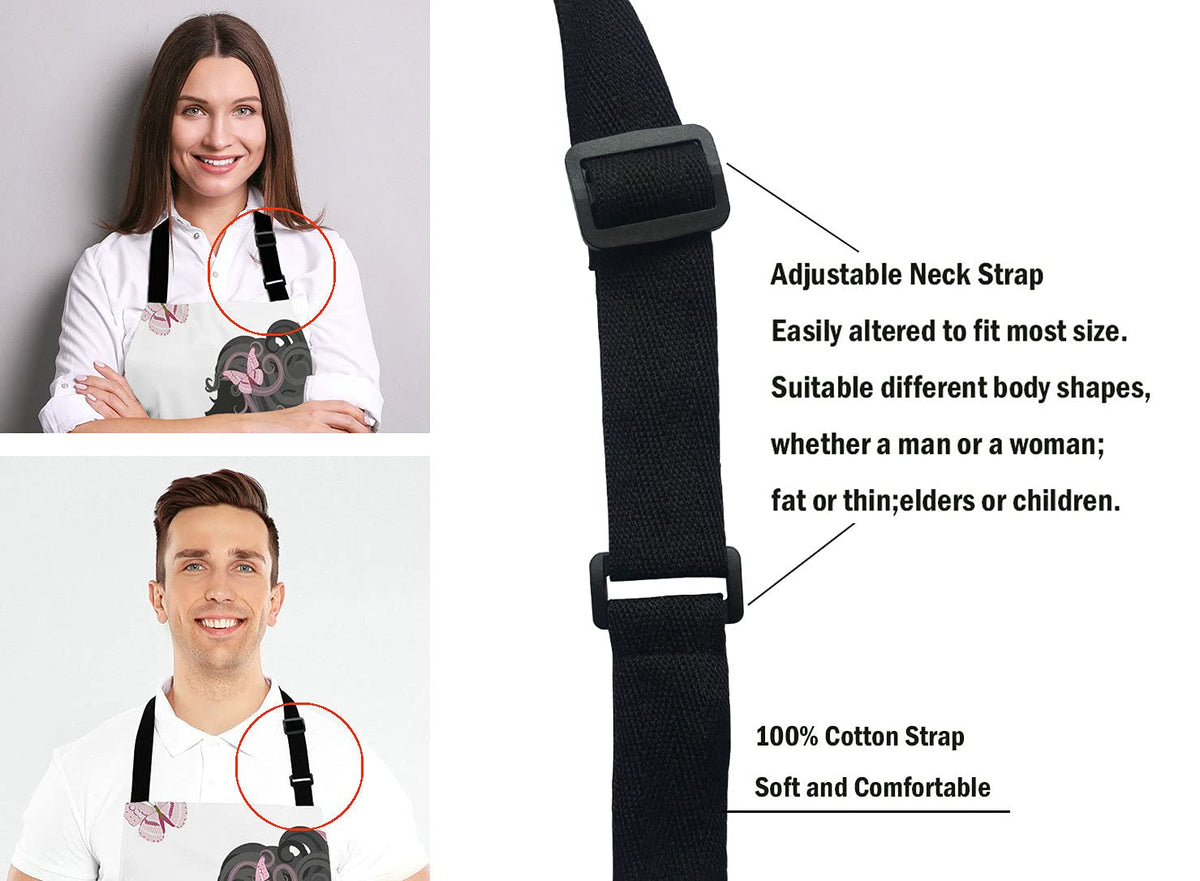 - Q: Does the apron have an adjustable neck strap? A: Yes, the apron comes with an adjustable neck strap that can be quickly modified for individuals of different heights.