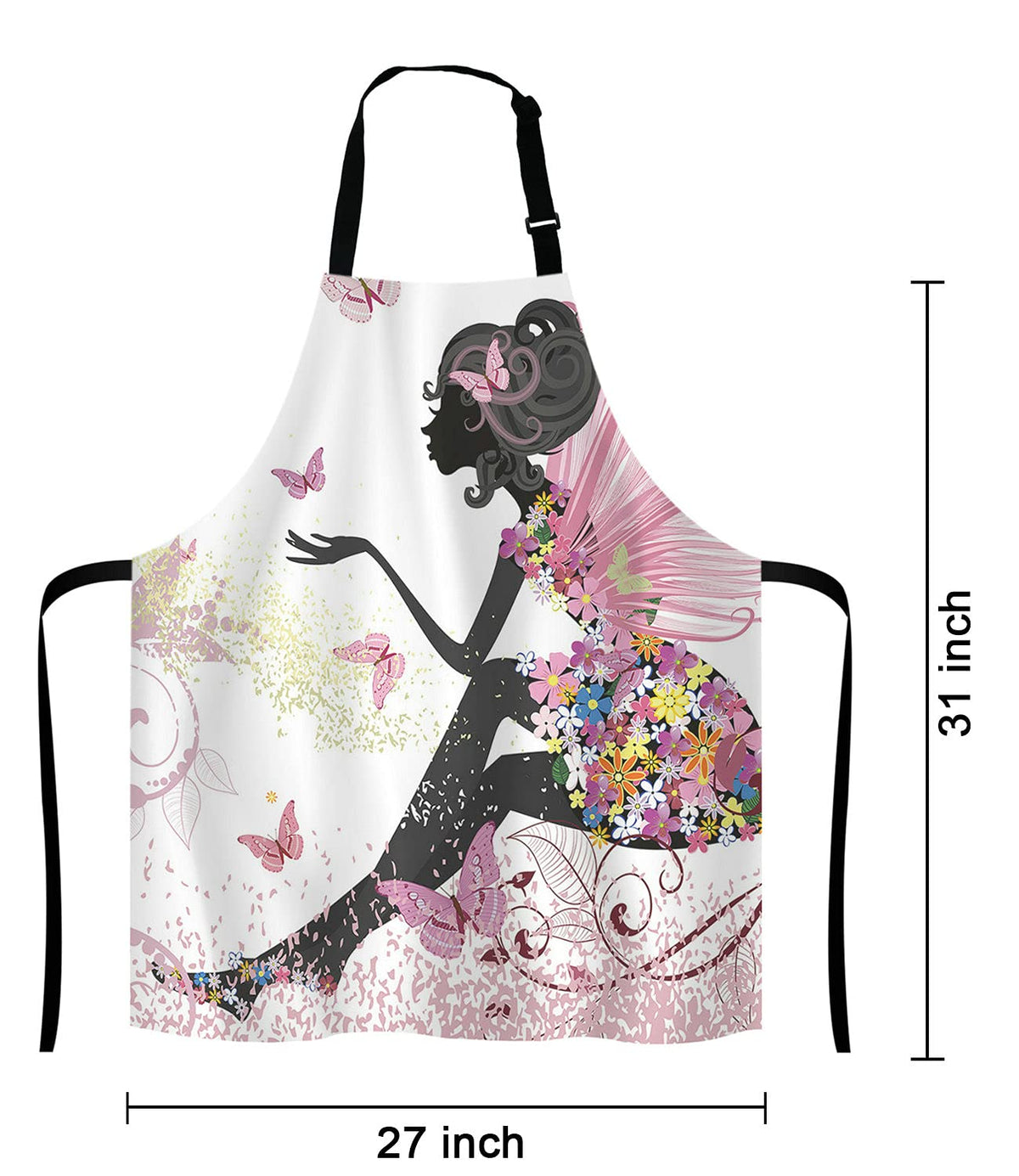 Lefolen Pink Butterfly Beautiful Girl Adjustable Bib Apron Kitchen Cooking Baking Gardening Apron For Women Men