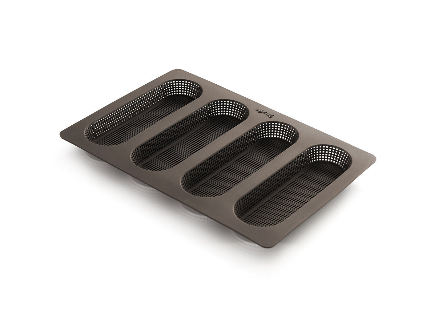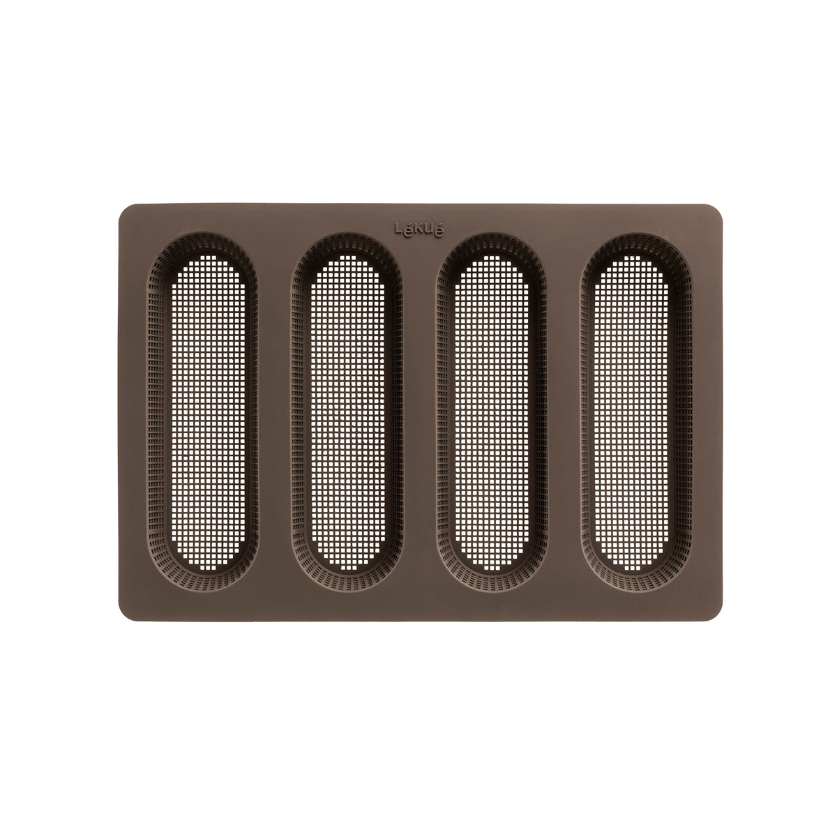 Lekue 4 Cavity Micro Perforated Mini Baguette Baking Pan, Brown