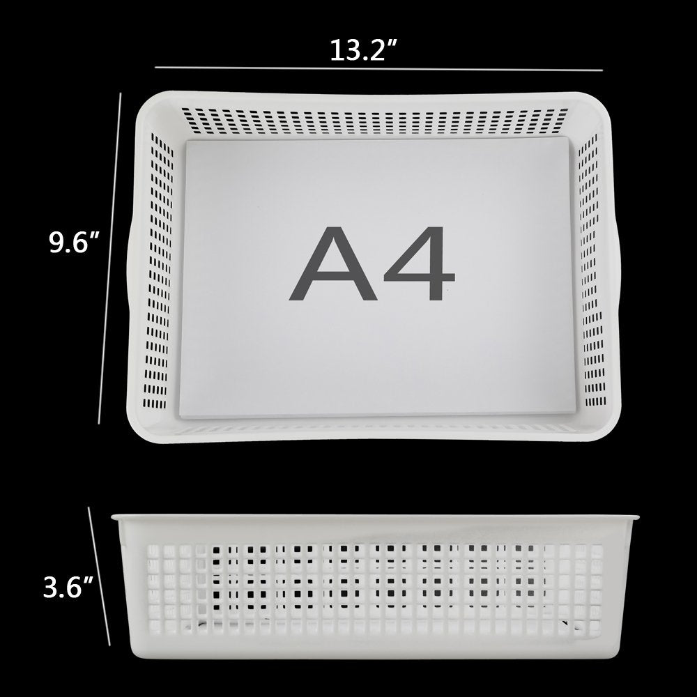 Lesbin Plastic Storage Trays Baskets/Organizing Baskets, 13.2 Inches X 9.6 Inches X 3.6 Inches, Set Of 6 (White)