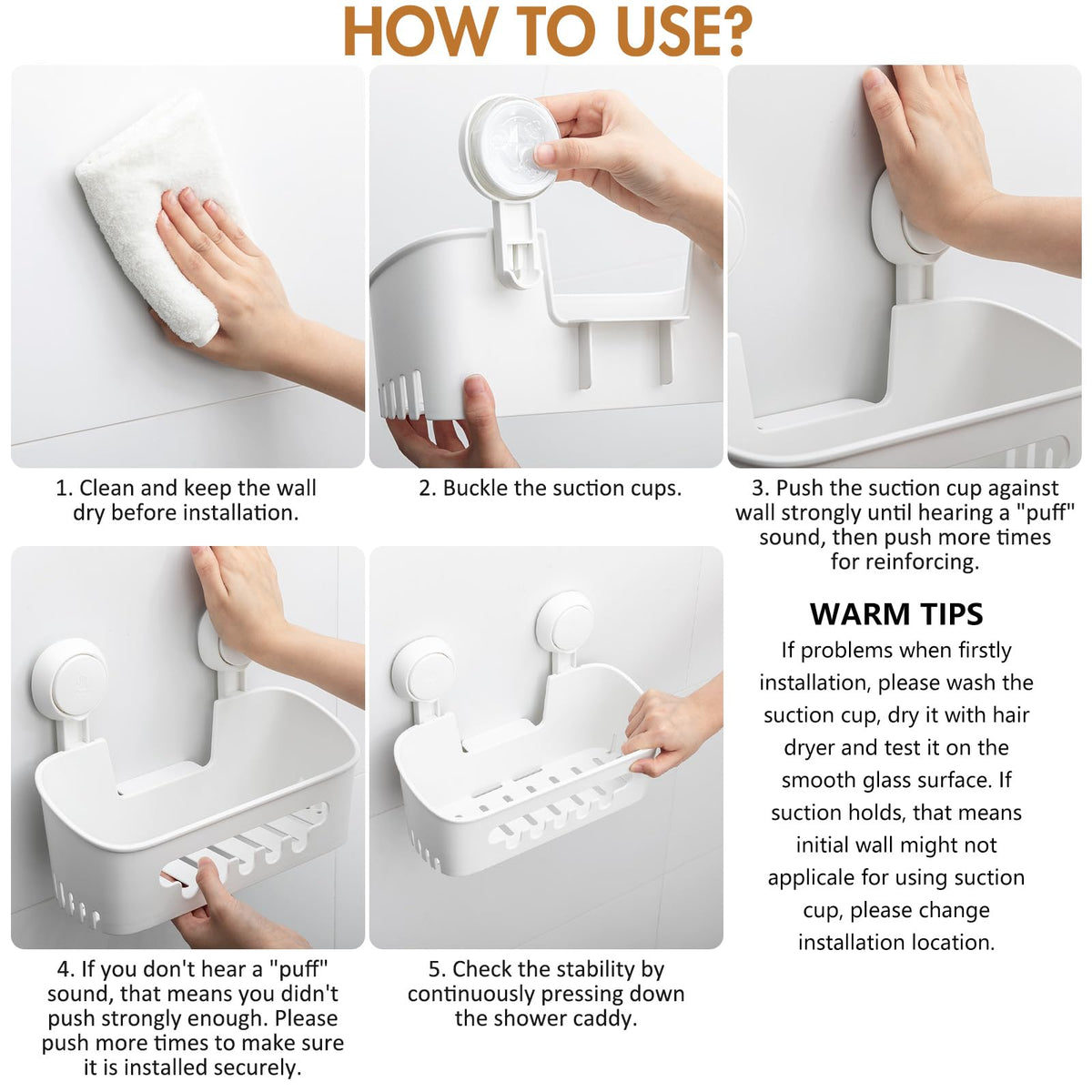 - Q: What kind of maintenance does the shower caddy require? A: To maintain optimal suction, clean the suction cups regularly, and ensure the surface is smooth and dry before reapplying.