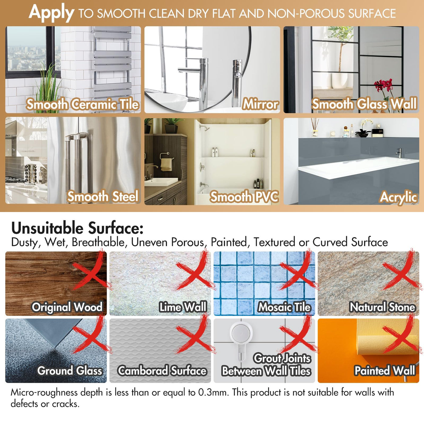 - Q: Will the suction cups work on painted walls? A: No, the suction cups are not designed to adhere to painted or dry walls, wood, wallpaper, or any other rough or cracked surfaces.