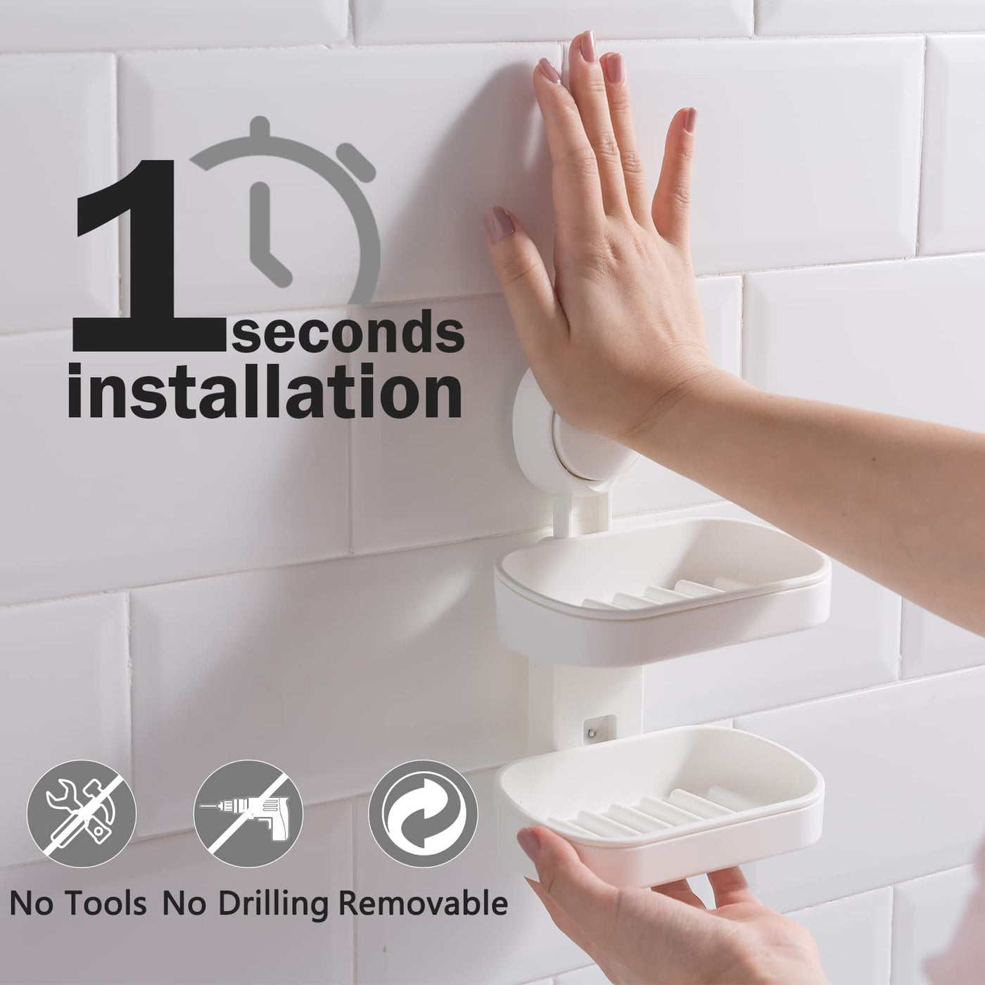 Leverloc Soap Dish Soap Holder For Shower Double Layer Suction Cup Wall Mounted No-Drilling Self Draining Removable Waterproof S