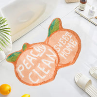 - Q: What color options are available for this bath mat? A: The bath mat features a vibrant peach color, adding a cute fruit decor element to your bathroom or kitchen.