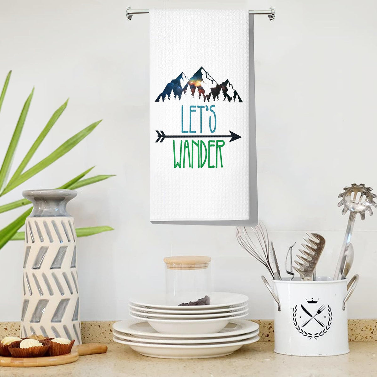 Levlo Camping Kitchen Towel Camping Life Gift Let'S Wander Camper Tea Towels Housewarming Gift Waffle Weave Kitchen Decor Dish T