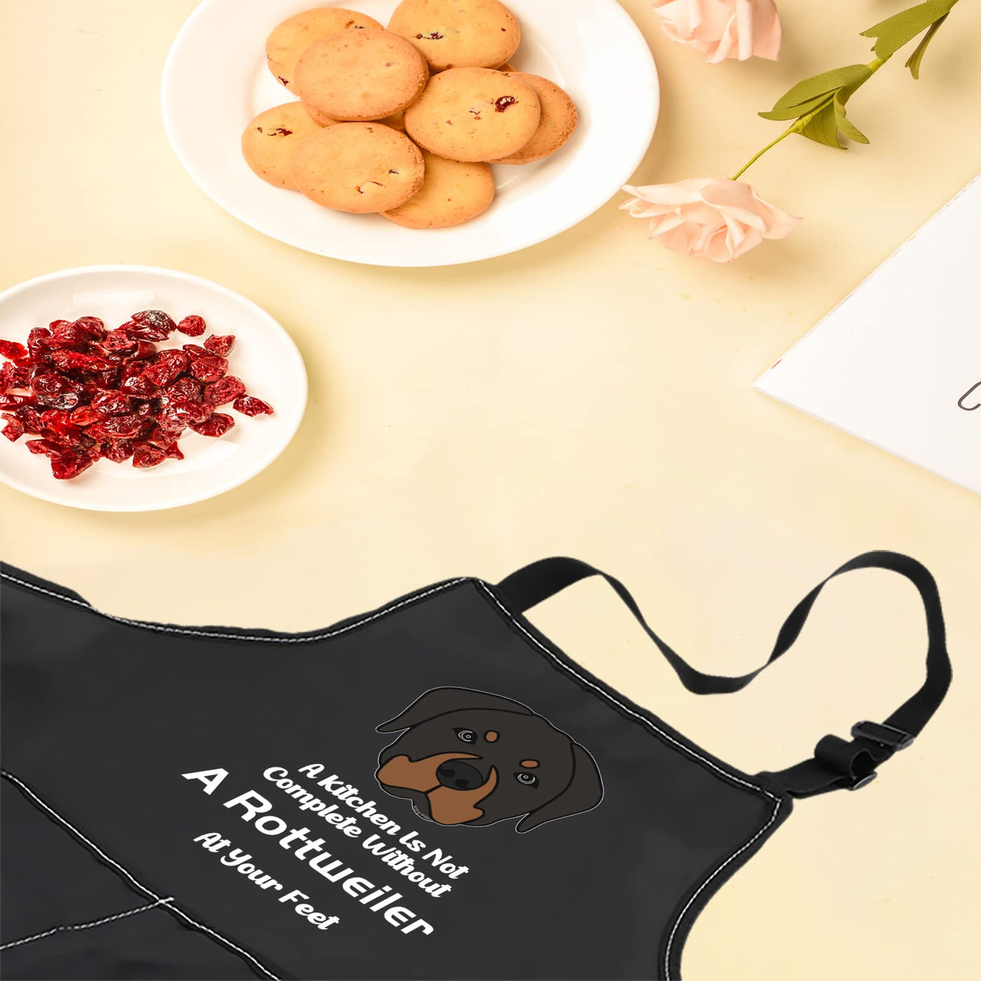 Levlo Funny Rottweiler Apron A Kitchen Is Not Complete Without A Rottweiler At Your Feet Kitchen Apron For Dog Dad Mom(Without A