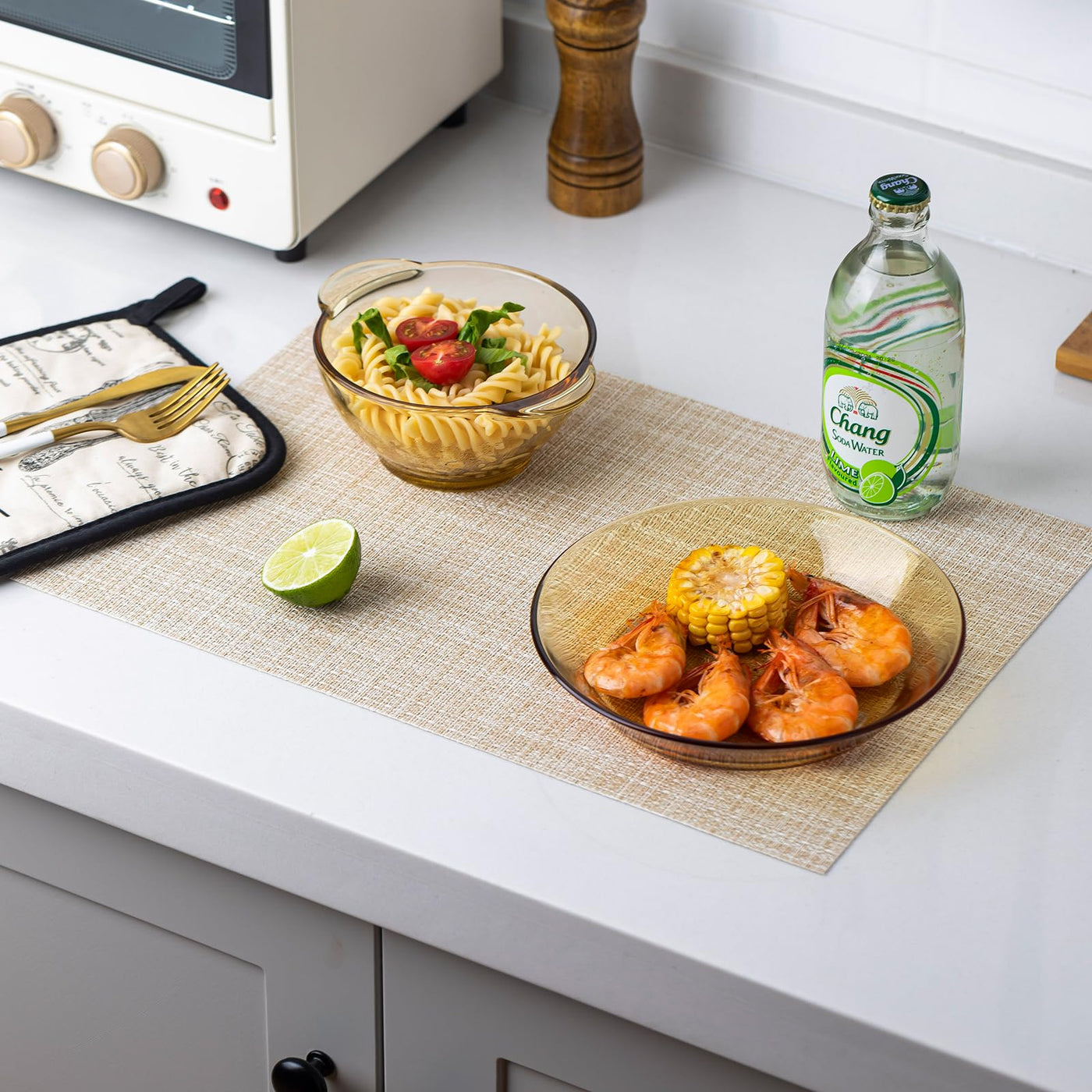 • Q: Do the placemats provide good grip to prevent sliding? A: Yes, the textured surface of the placemats helps to keep dishes in place and prevent sliding during use.