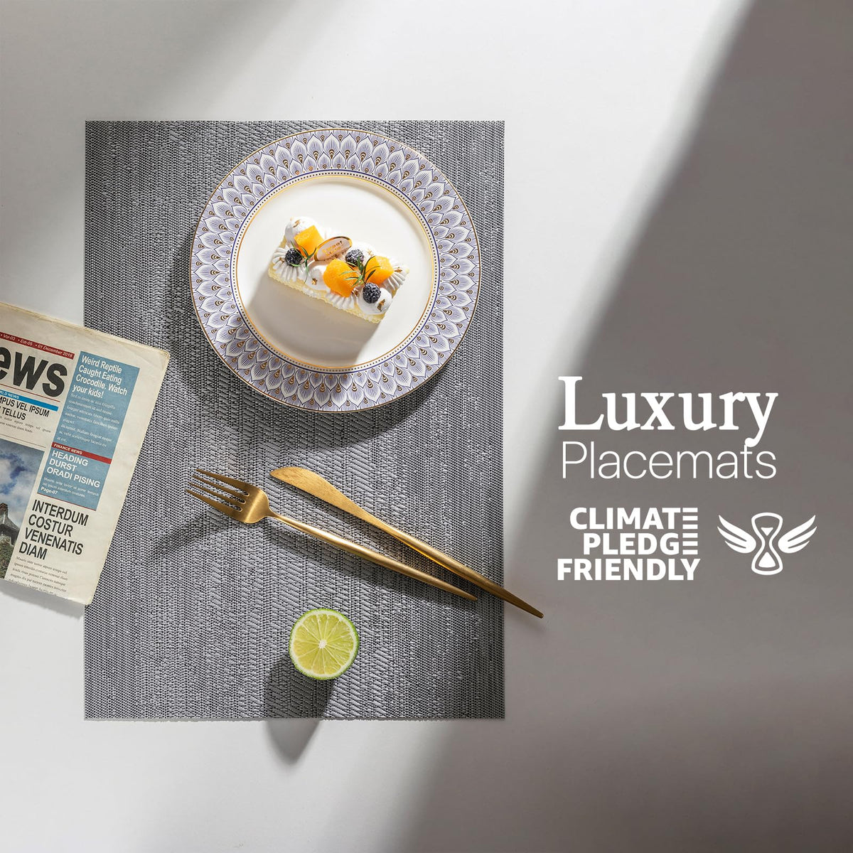 Lexmore Pvc Woven Placemats 8 Pcs Wipeable Indoor/Outdoor Table Mats Washable Vinyl Place Mat For Dining Table, Set Of 8-Gray