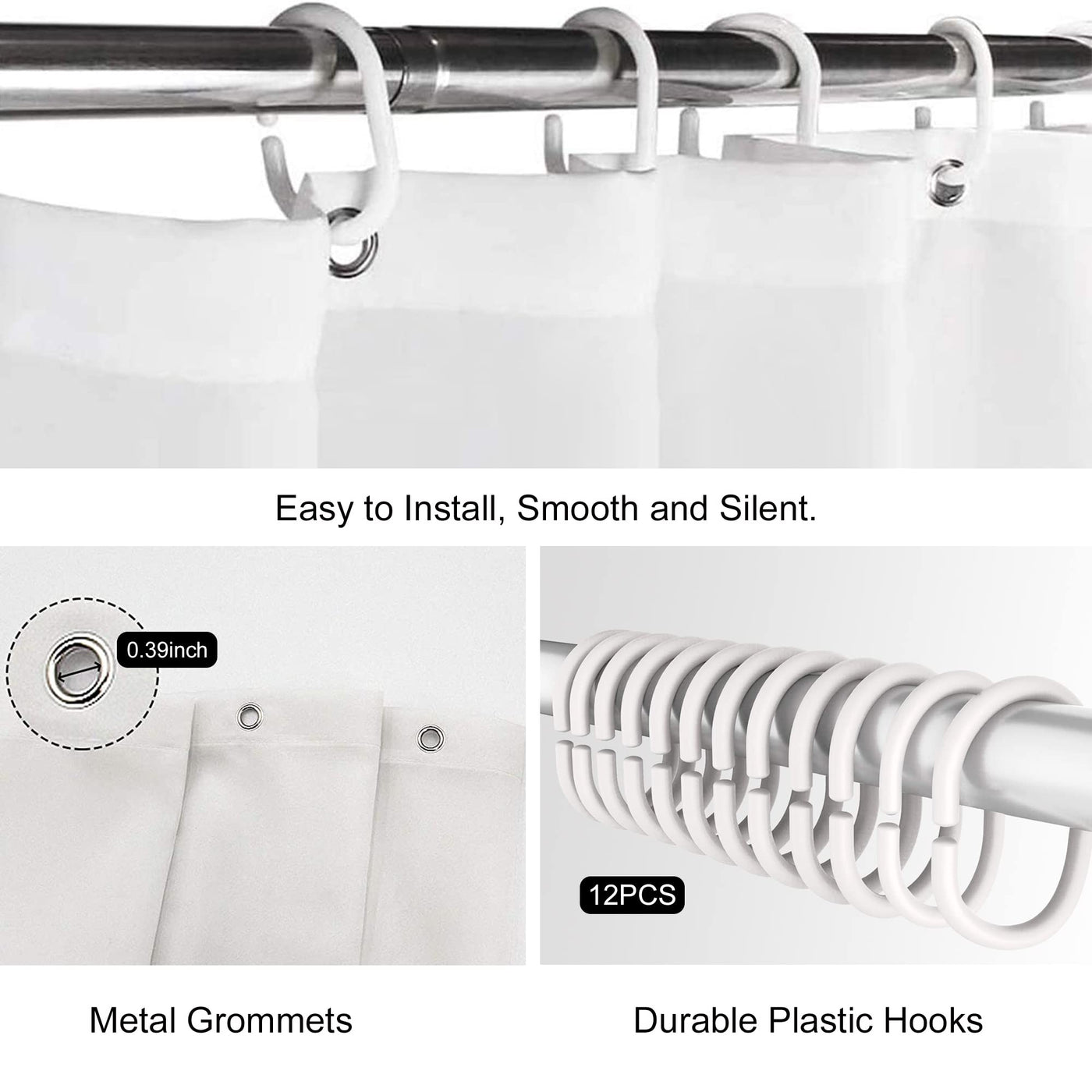 • Q: Is the shower curtain waterproof? A: Yes, the shower curtain is made from waterproof polyester fabric, ensuring it effectively keeps water contained within the shower area.