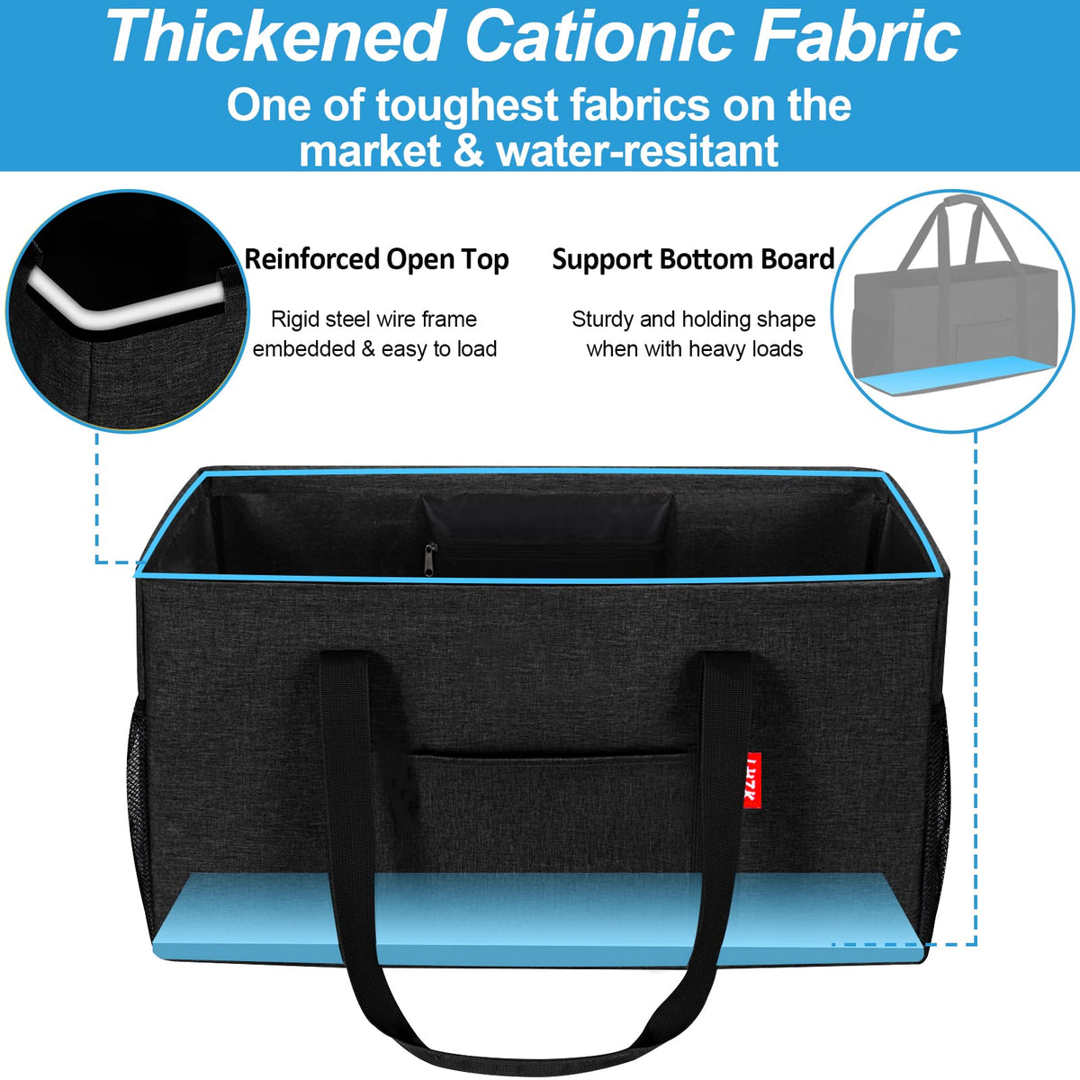 Lhzk Standing Extra Large Utility Tote Bag With Metal Wire Frame And The Sides Rinforced, Large Collapsible Tote (Black)