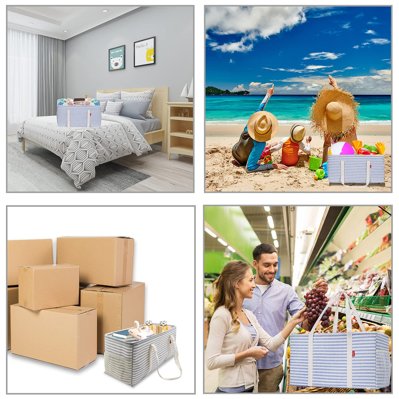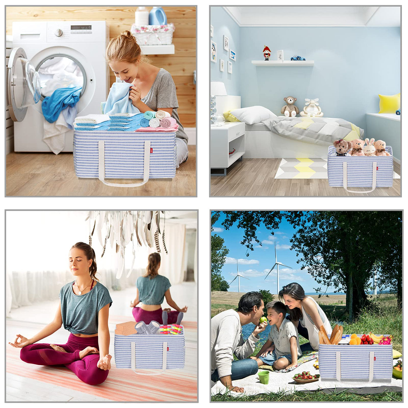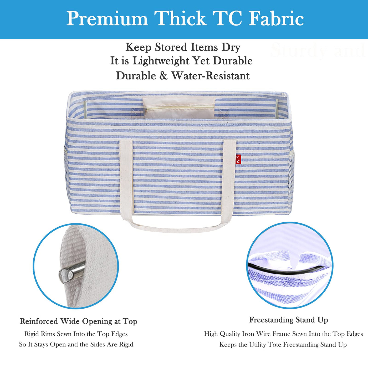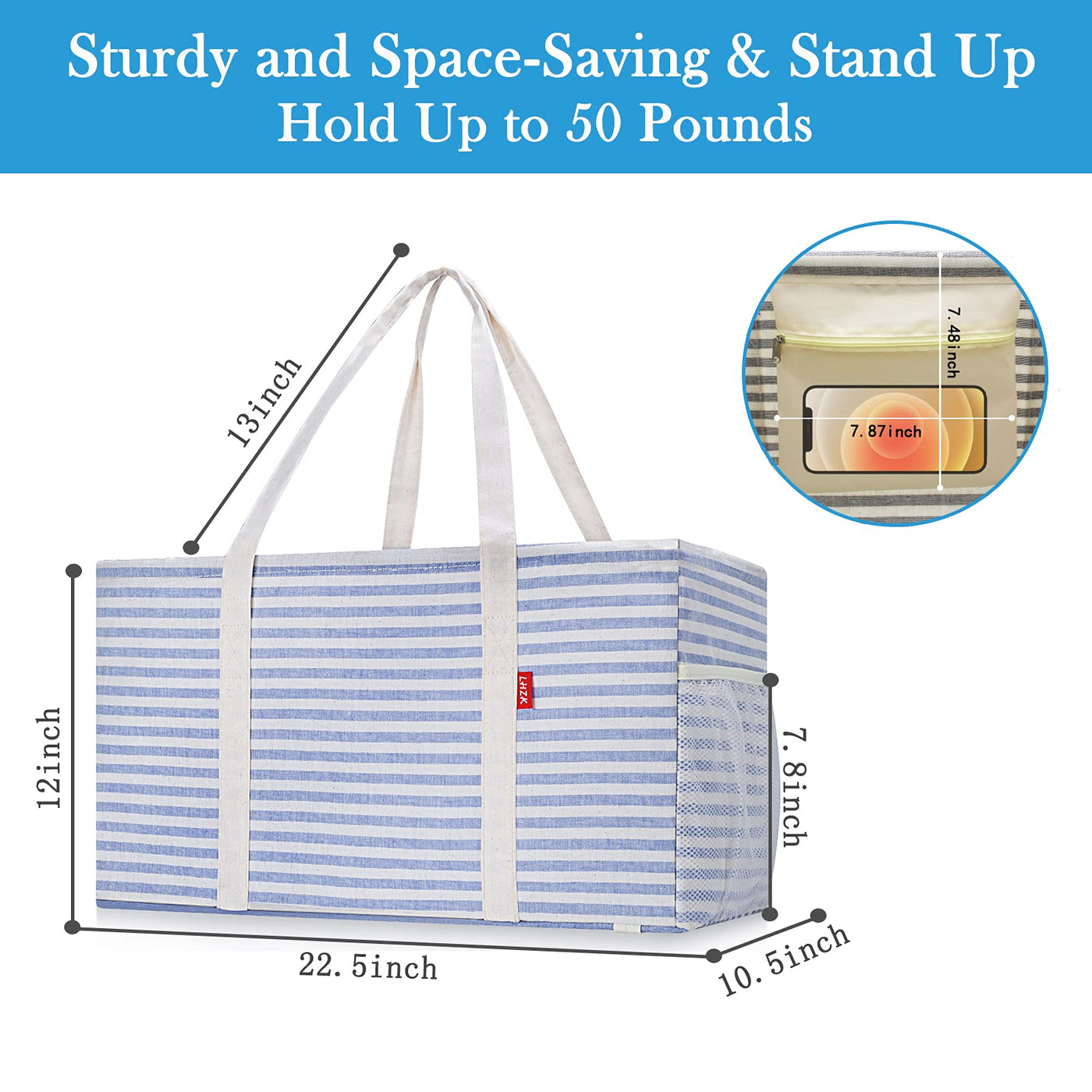 Lhzk Standing Extra Large Utility Tote Bag With Metal Wire Frame And The Sides Rinforced, Large Collapsible Tote (Blue)
