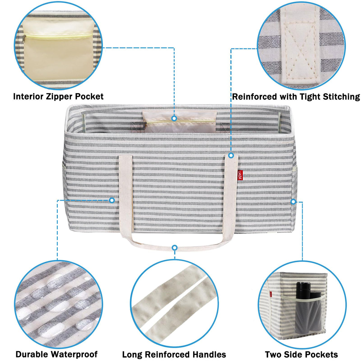 - Q: How many beach towels can this tote bag hold? A: The LHZK tote bag is large enough to fit up to 8 beach towels.