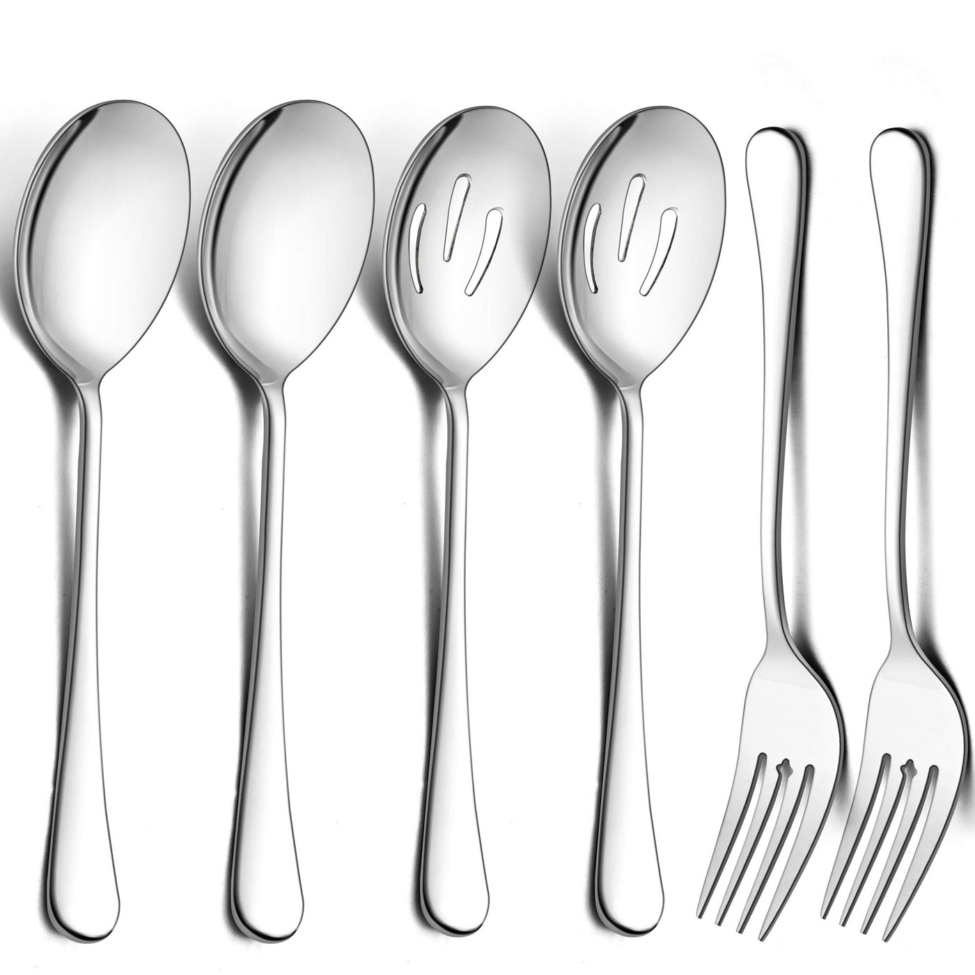 - Q: How many pieces are included in the set? A: The set includes a total of 12 pieces: 4 serving spoons, 4 slotted serving spoons, and 4 serving forks.