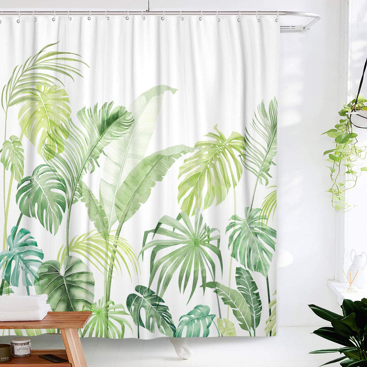 Lifeel Tropical Shower Curtain, Leaves Jungle Shower Curtain Palm Bathroom Shower Curtain Set Heavyweight With 12 Hooks, Green W