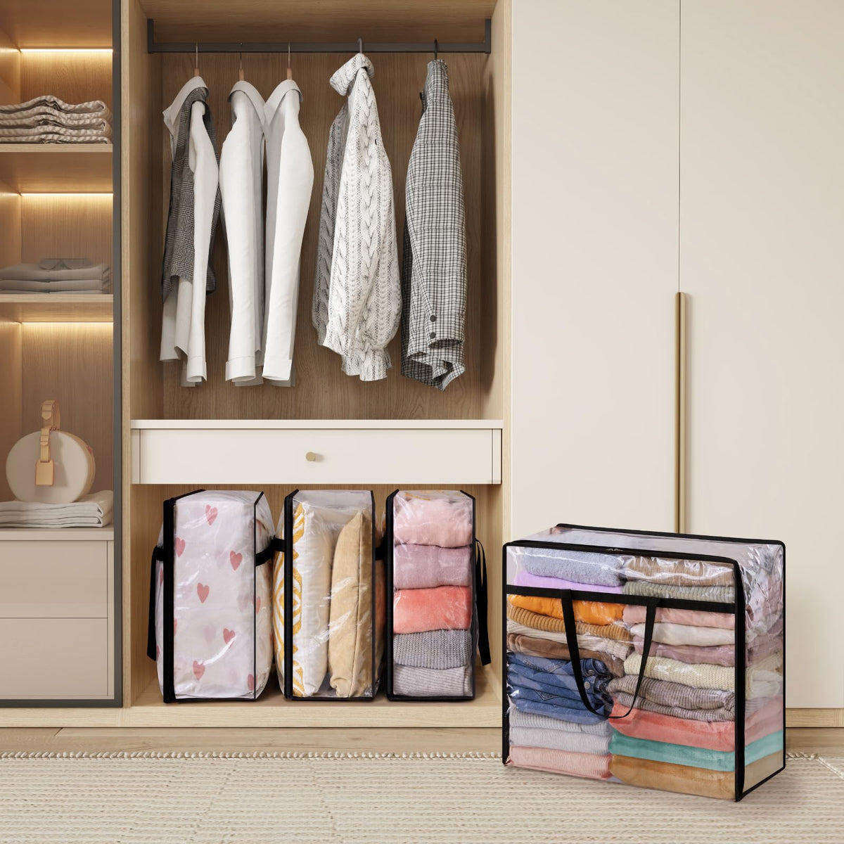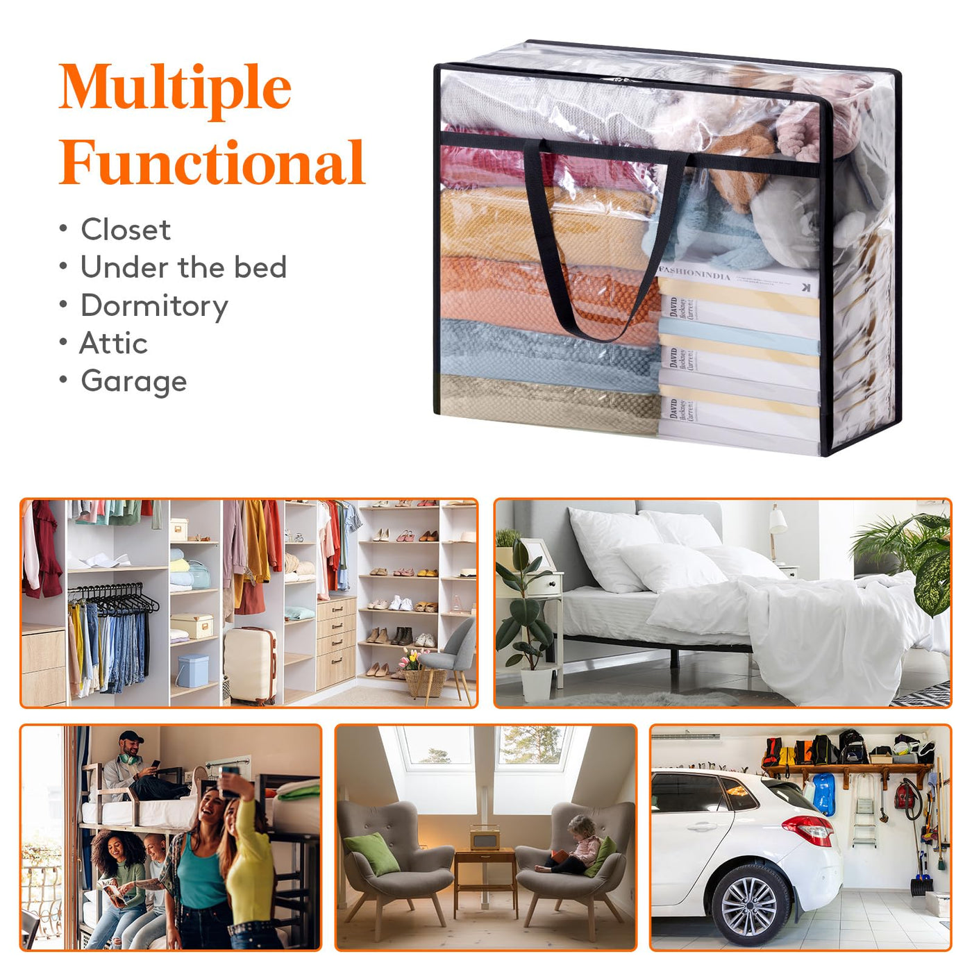 Lifewit 110L Large Clear Clothes Storage Bags, 3 Pack Plastic Vinyl Foldable Moving Bags with Zipper, Closet Organizers and Stor