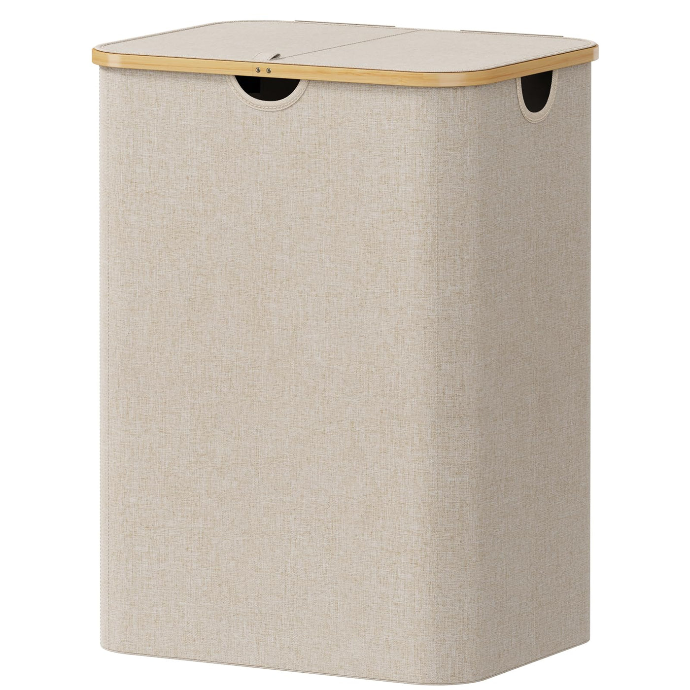 Lifewit 150L Laundry Basket With Lid, Clothes Hampers For Laundry With Bamboo Handles And A Removable Bag, Large Foldable Laundr