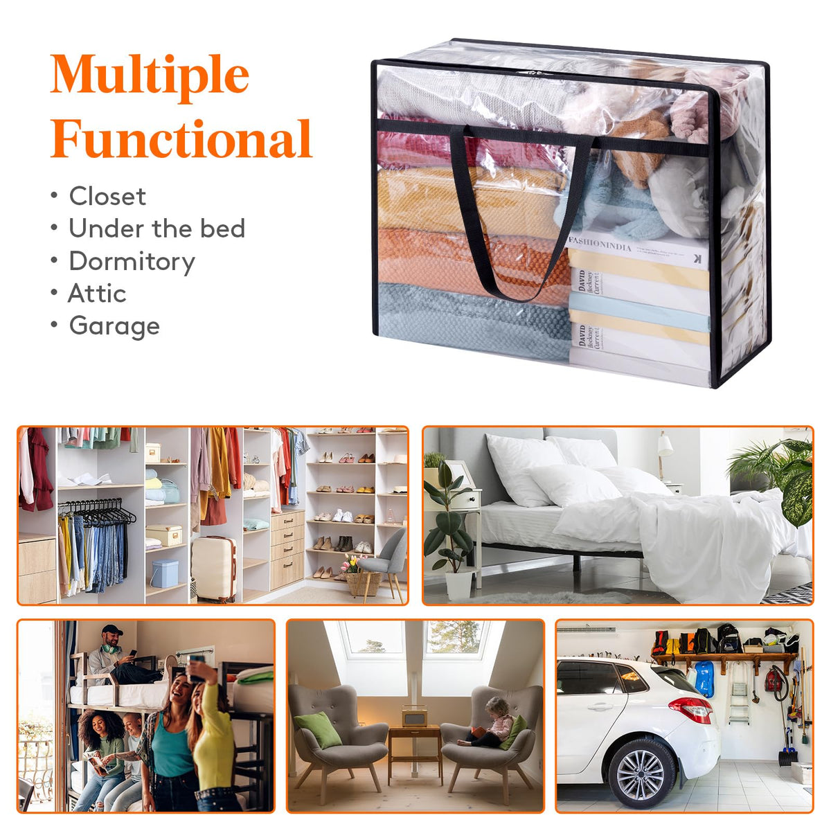 Lifewit 2 Pack Clear Clothes Storage Bags, 90L Large Plastic Blanket Storage, Vinyl Foldable Moving Bags with Zipper, Closet Organizers Containers for Comforter, Bedding, Duvet, Pillow