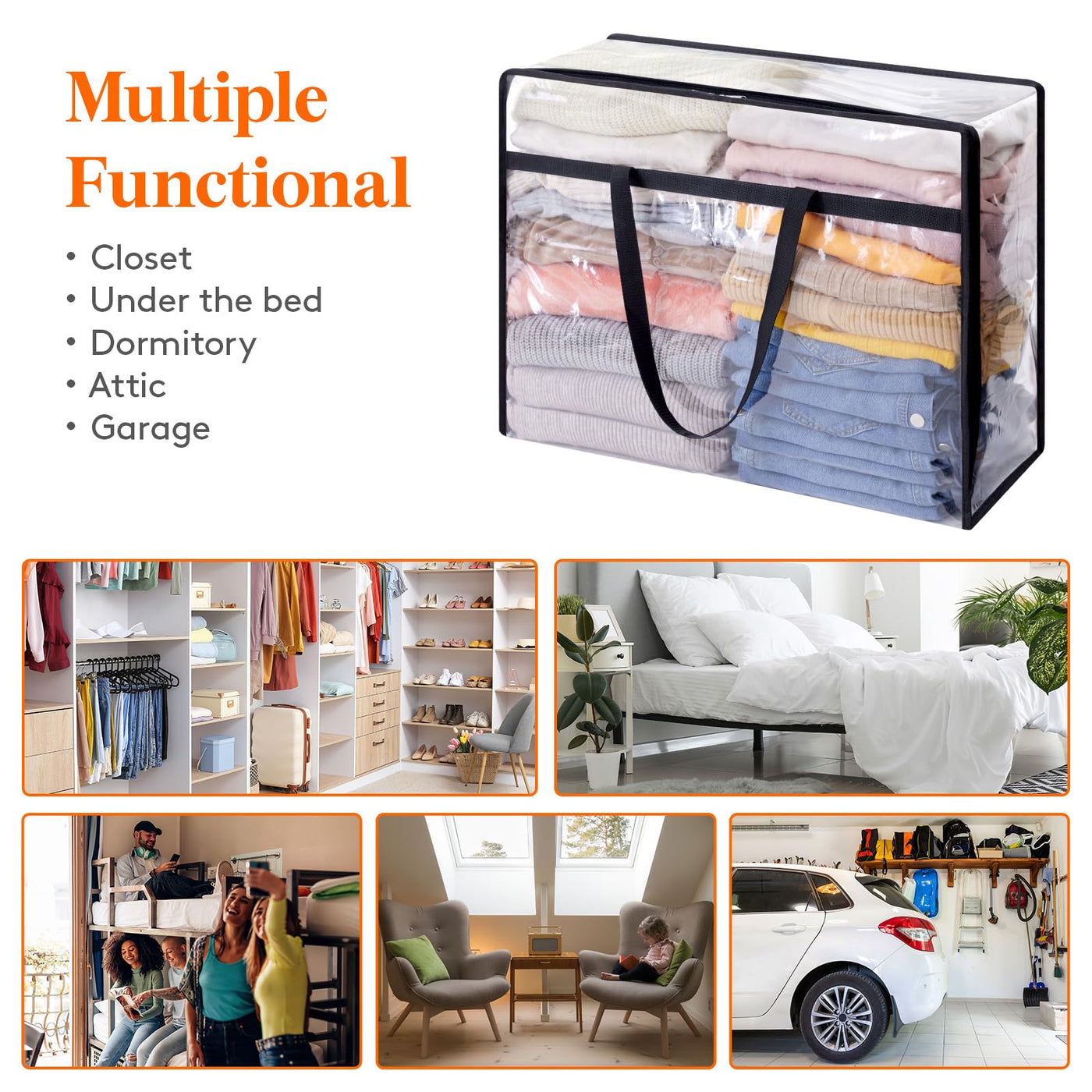 Lifewit 3 Pack Clear Clothes Storage Bags, 75L Large Plastic Blanket Storage, Vinyl Foldable Moving Bags with Zipper, Closet Organizers Containers for Comforter, Bedding, Duvet, Pillow