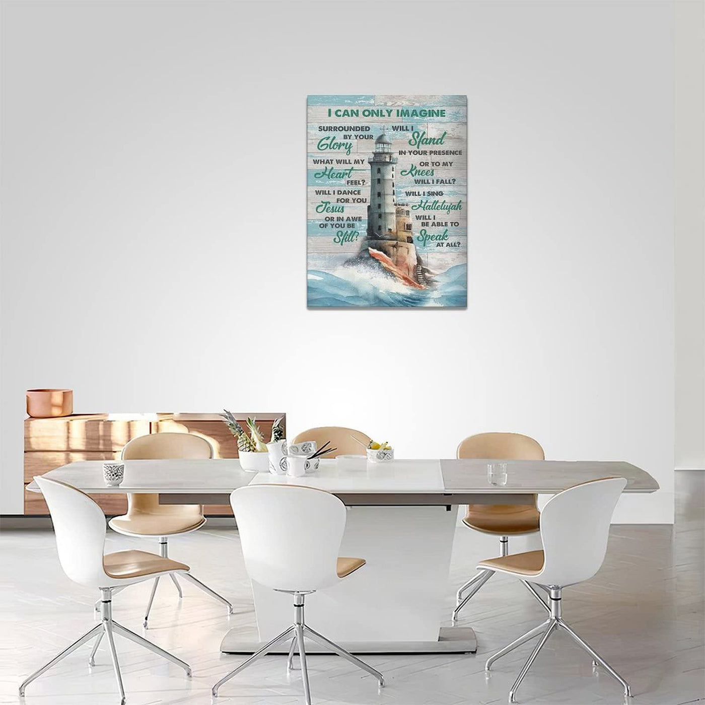 - Q: What type of designs does this wall art feature? A: This wall art features a unique nautical design that includes Christian scriptures, adding a modern artistic touch to your space.