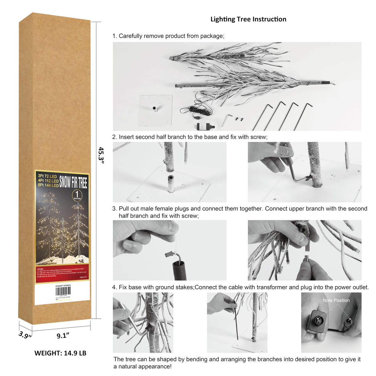BEST VALUE: this pack of 3 combos was born for big savings. 3 Lighted Stars are included as a gift | FLEXIBLE BRANCH: Bendable branch DIY for shaping a natural tree, so you can reshape them as desired, sturdy enough to support relatively ornaments. | ENERGY SAVING: LED lights meet the need for brightness, energy saving, and a long life of up to 30,000 hours. | SAFETY LOW VOLTAGE: UL-certified and waterproof adapter with VI energy efficiency at 24 low voltage. | HOLIDAY DECORATION: this snowy tree set sparks holiday and makes one eye-catching. Widely used for home, shop, garden, Christmas, party, wedding and all kinds of festival.