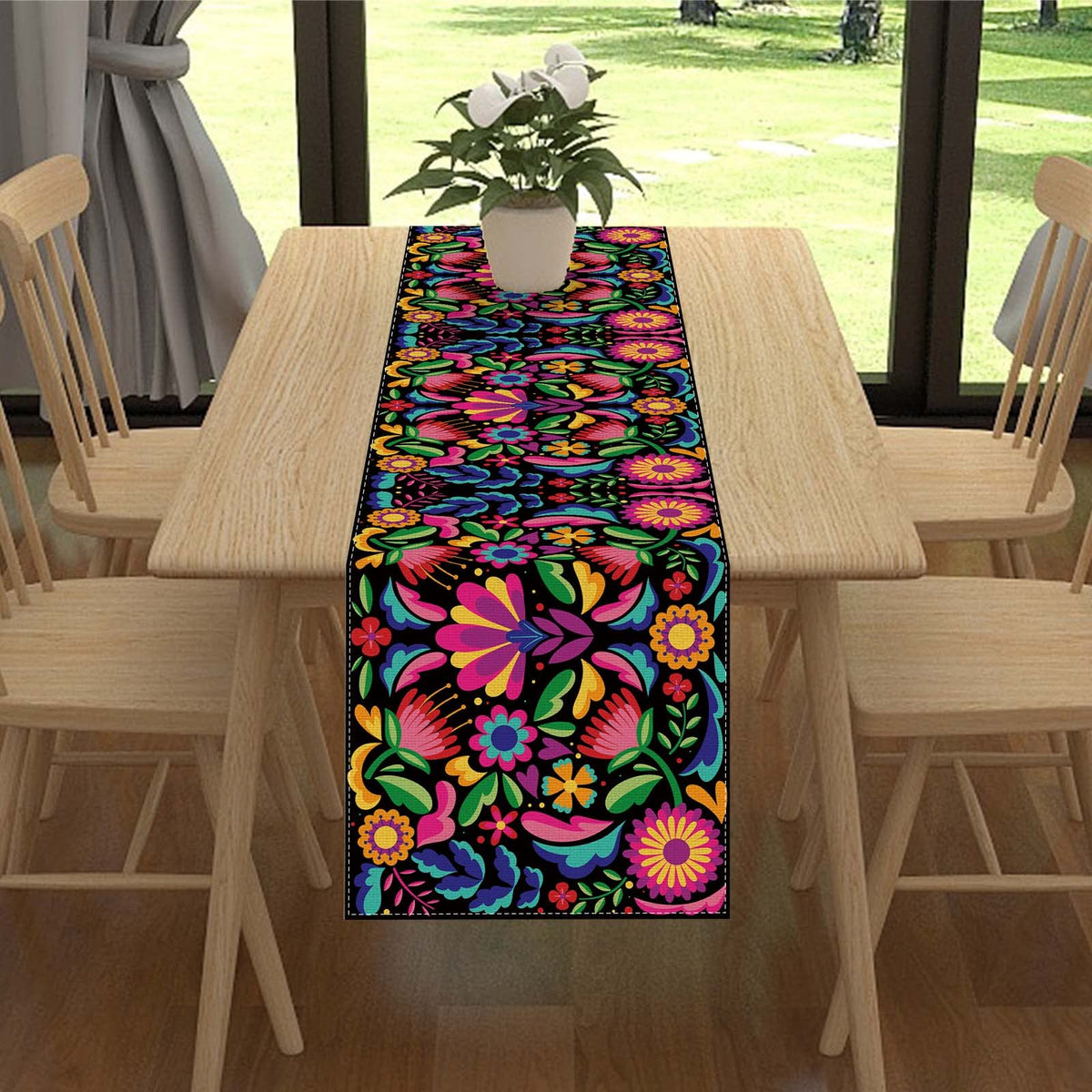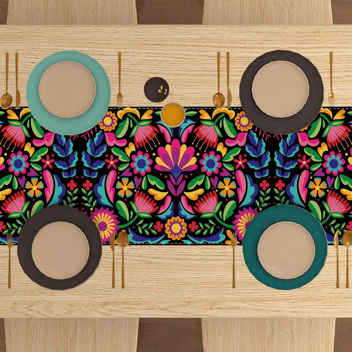 Linen Mexican Fiesta Table Runner 72 Inches Long Cinco De Mayo Tablecloth Dia De Los Muertos Decor Day Of The Dead Decoration An