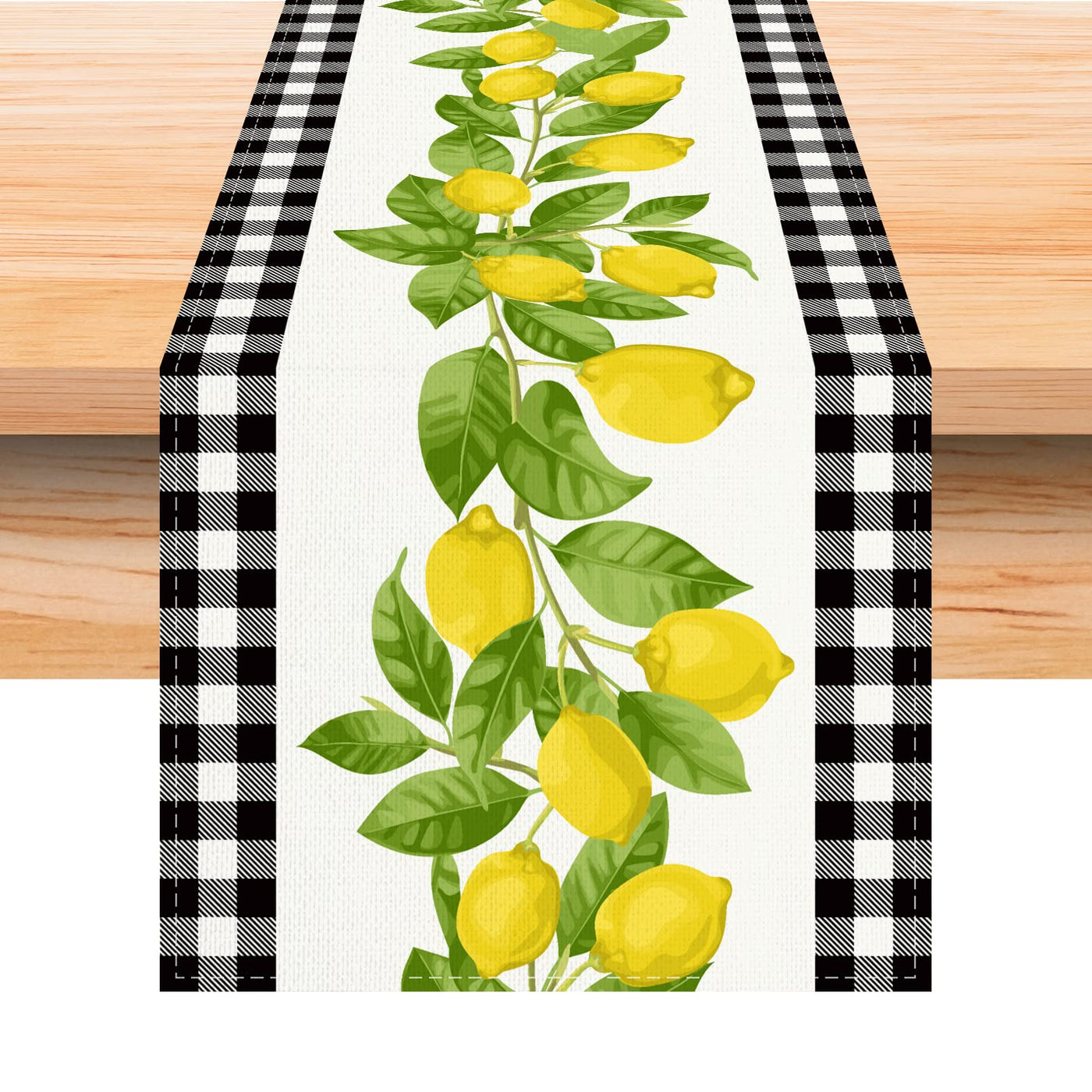 Linen White And Black Buffalo Plaid Check Lemon Table Runner 72 Inches Long Farmhouse Style Spring Summer Home Kitchen Dinding R