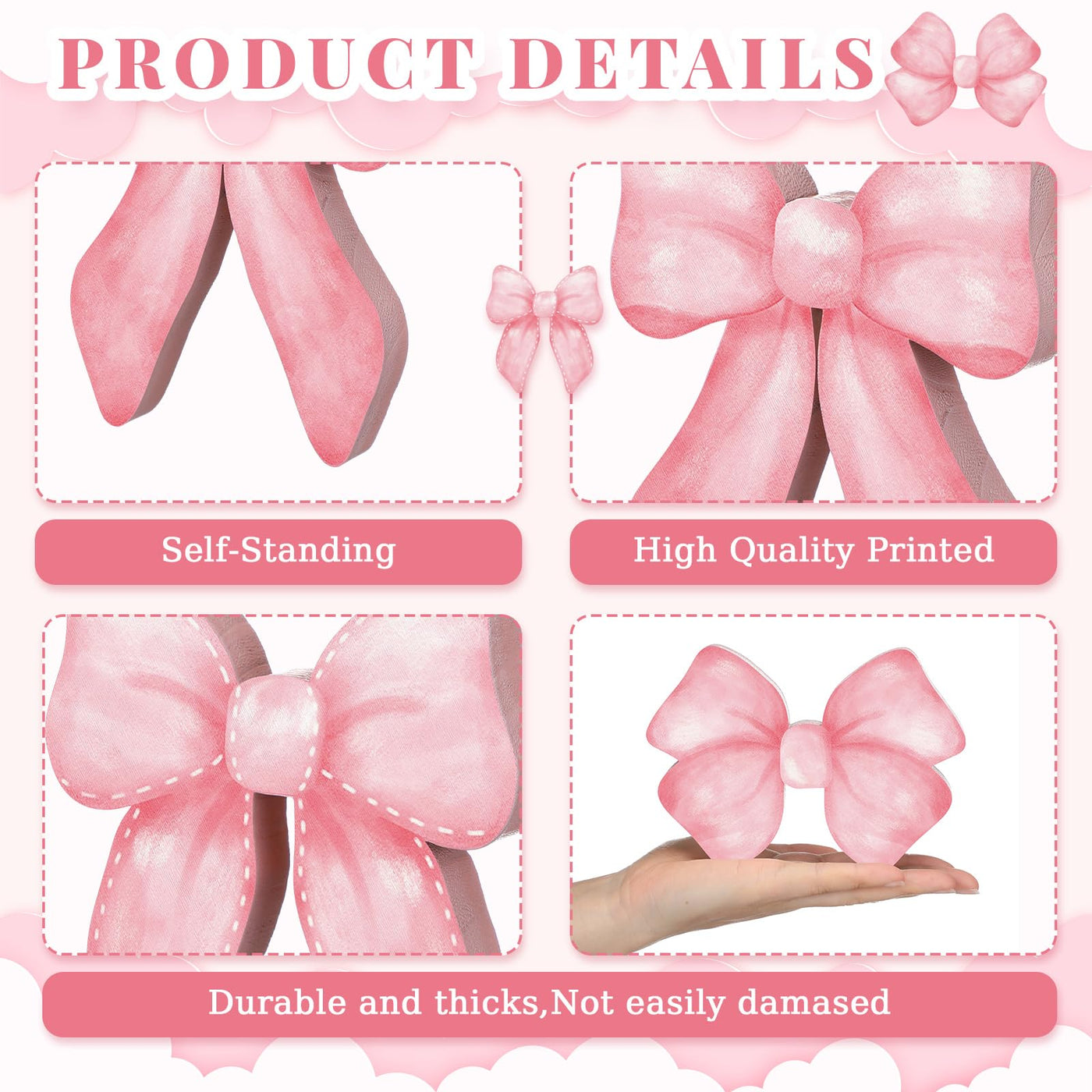 Lineshading 3 Pcs Pink Bow Coquette Room Decor Wooden Sign Preppy Room Coquette Party Decor Girly Pink Bows Tiered Tray for Home