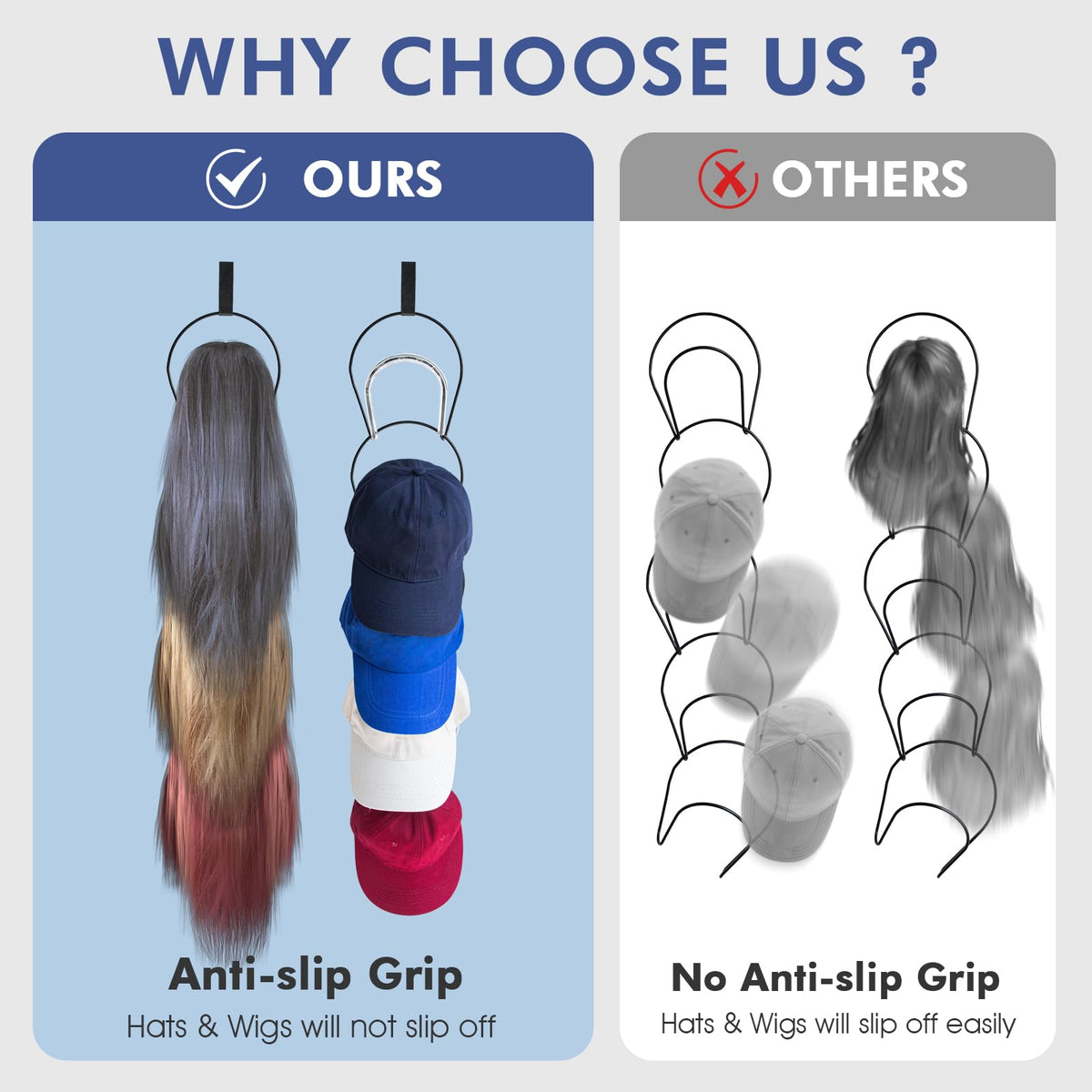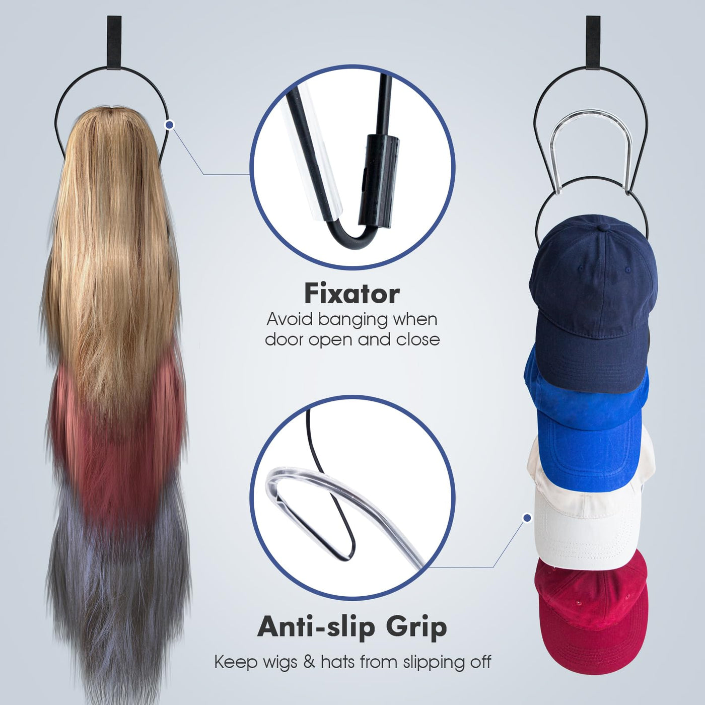 Livememory Wigs Holder, Hanging Hat Rack Wigs Storage Hanger Hat Organizer for Door, Wall, Closet, Bathroom,10pack (Black)