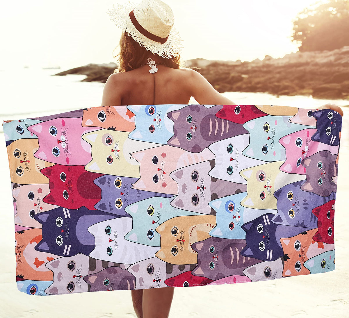 - Q: What are the primary uses for this towel? A: This towel is versatile and can be used for the beach, pool, bath, or as a cute gift for cat lovers.