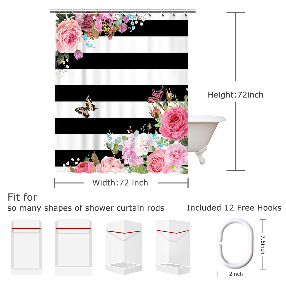 - Q: Is the shower curtain suitable for all types of bathrooms? A: Yes, the unique design with floral patterns and black and white stripes makes it suitable for various bathroom styles.