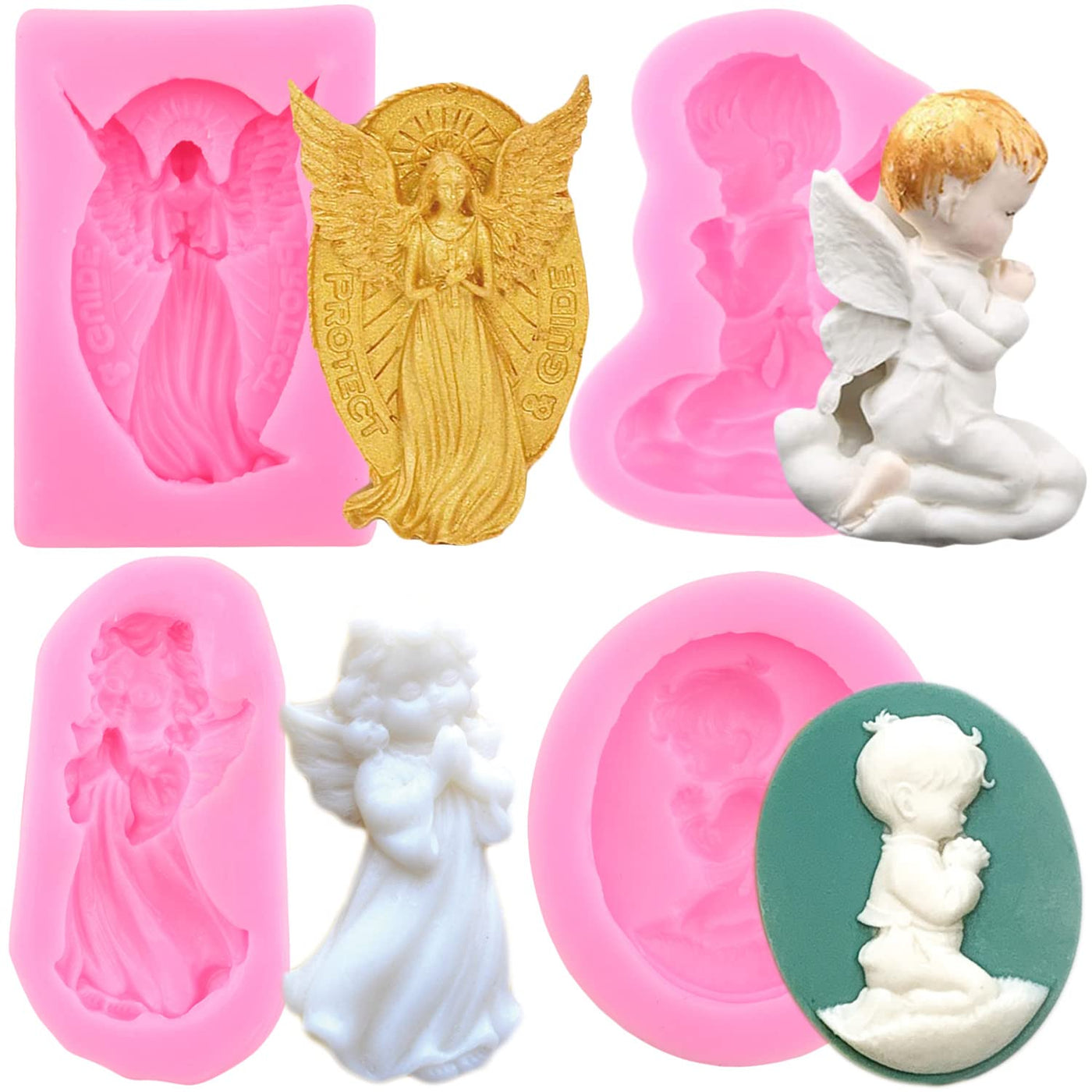 Lkdquthm Angel Silicone Fondant Molds For Sugar Cake Decorating Cupcake Topper Candy Chocolate Gum Paste Polymer Clay Set Of 4
