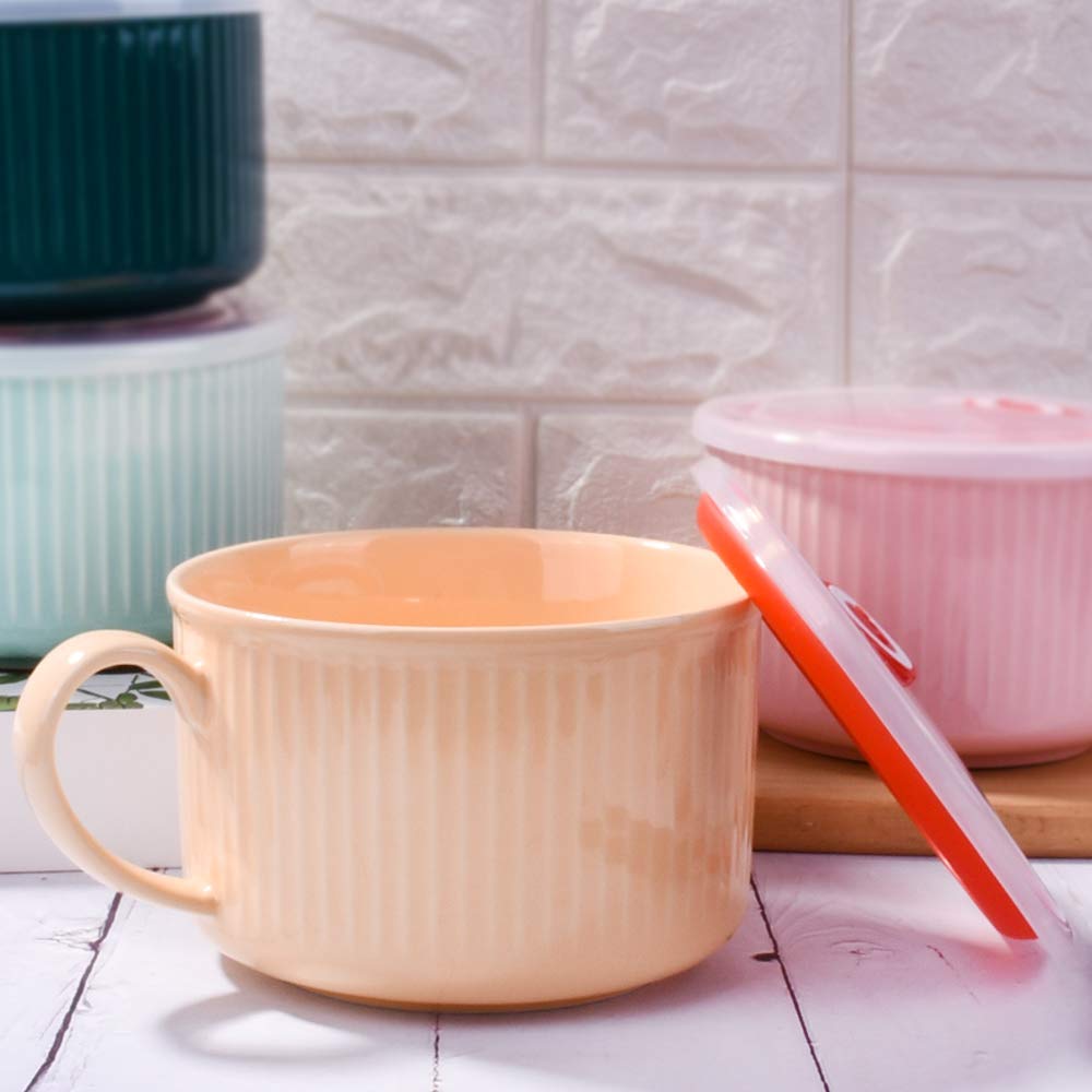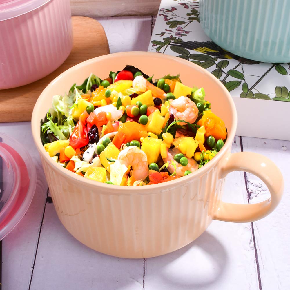 Lmrlcs Microwavable Soup Bowl With Handle And Lid, Soup Mug For Oat Instant Noodles, Snacks (Orange)