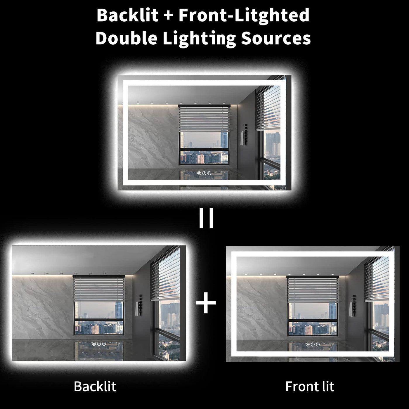 LOAAO 40X32 LED Bathroom Mirror with Lights Anti-Fog Dimmable Backlit + Front Lit Lighted Bathroom Vanity Mirror for Wall Memory Function Waterproof Tempered Glass
