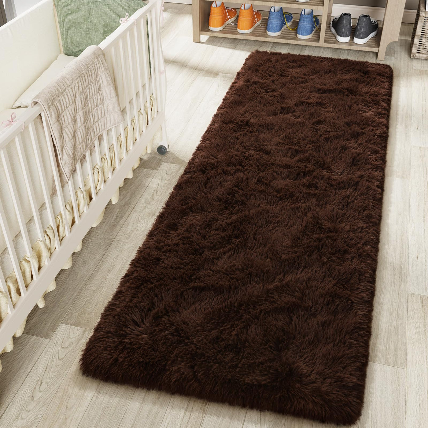 LOCHAS Ultra Soft Indoor Modern Area Rugs 2x6, Fluffy Living Room Carpets for Children Bedroom Home Decor Nursery Rug, Brown