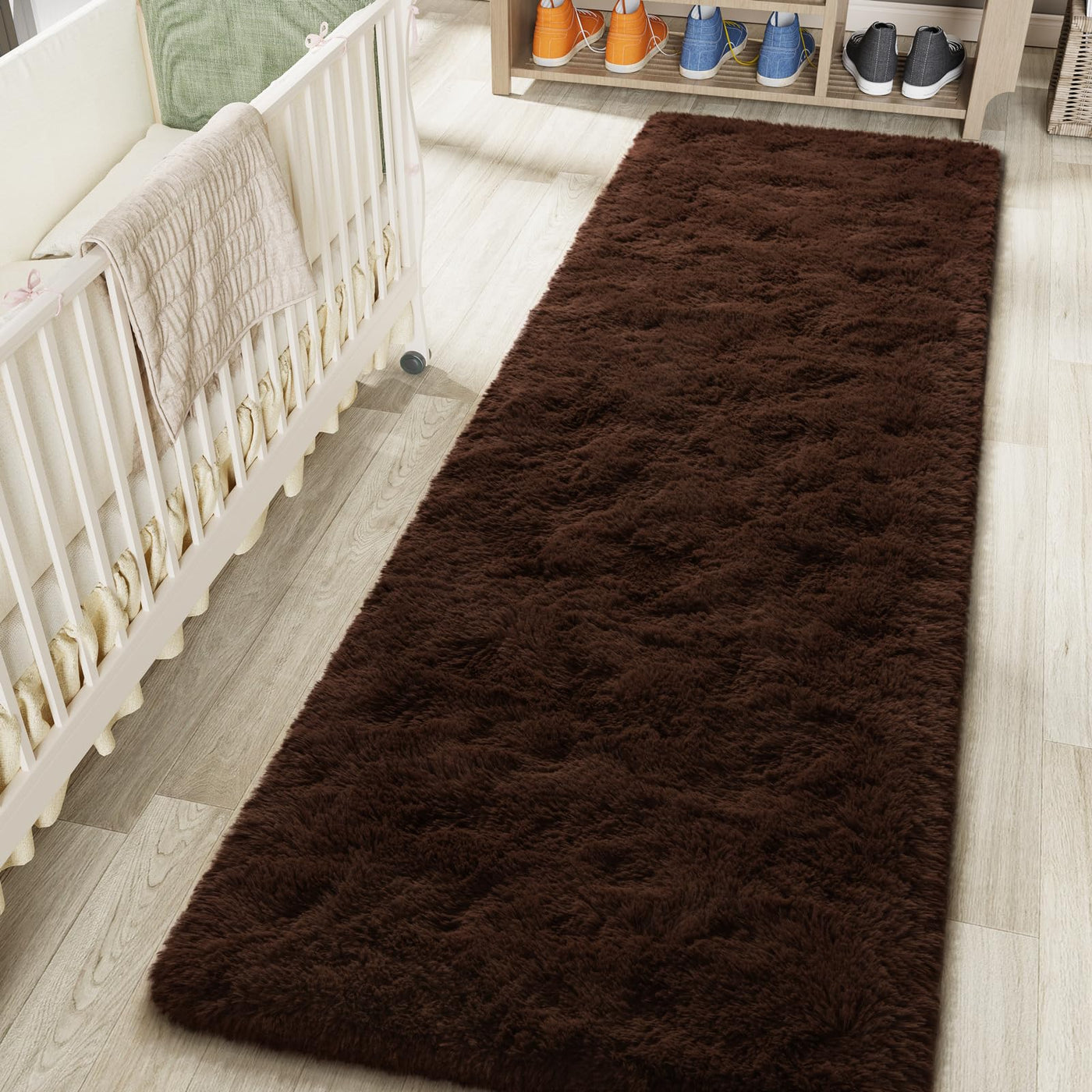 LOCHAS Ultra Soft Indoor Modern Area Rugs 2x8, Fluffy Living Room Carpets for Children Bedroom Home Decor Nursery Rug, Brown
