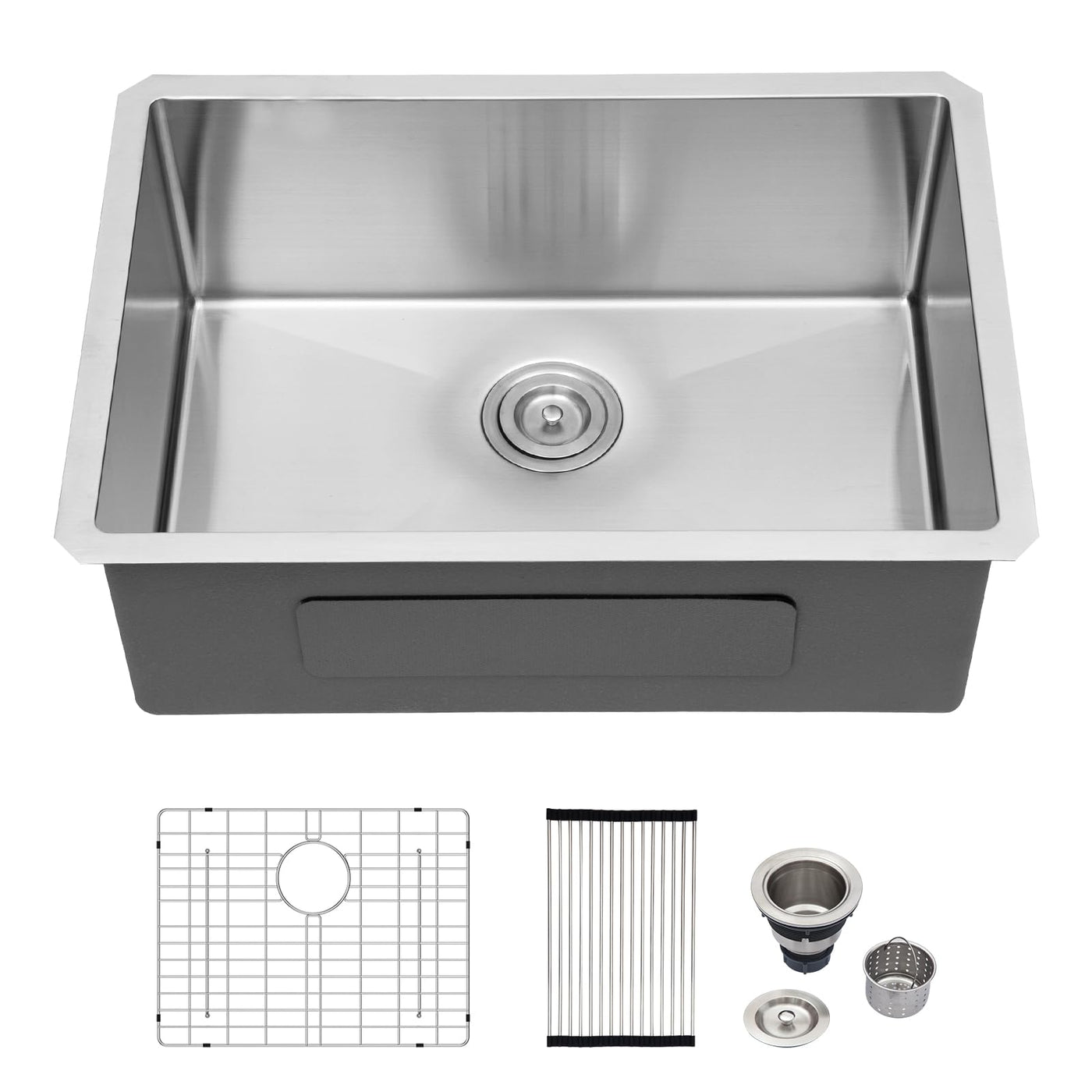 Logmey 27 Inch Undermount Kitchen Sink - 27X18 In Handmade Stainless Steel Kitchen Sinks 16 Gauge 9 Inch Deep Single Bowl Sinks