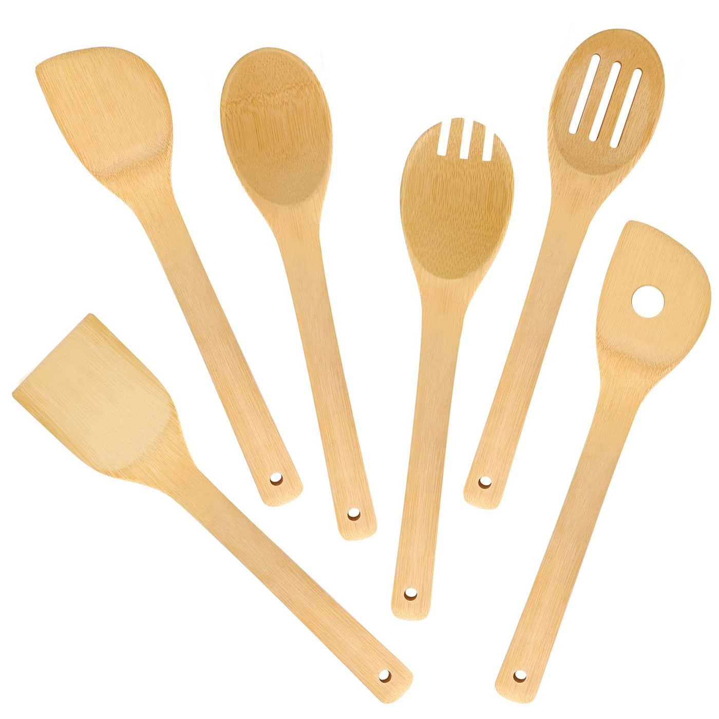 • Q: How do I clean the bamboo spatula and spoon set? A: To clean the bamboo spatula and spoon set, give them a quick rinse, wash with a soapy cloth, and either hang-dry or dry them in an upright position.