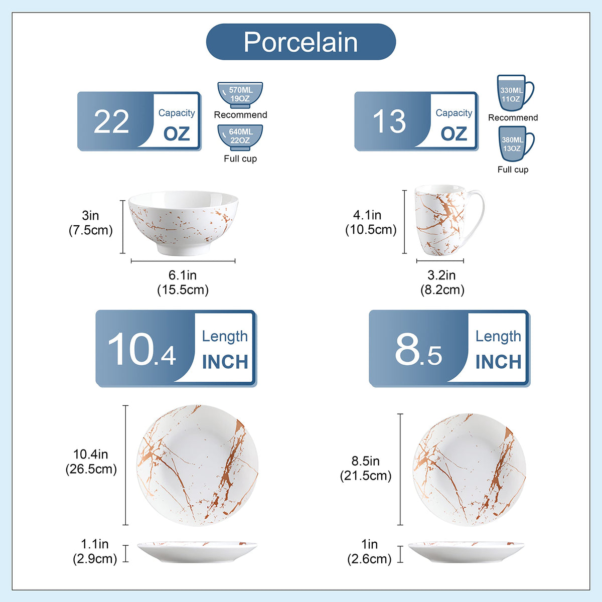 - Q: What types of dishes are included in the LOVECASA dinnerware set? A: The set includes dinner plates, dessert plates, bowls, and mugs, providing a comprehensive dining experience.