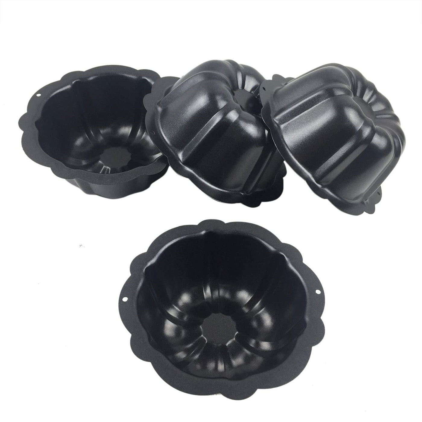 Lovedeal 4 Inch Nonstick Mini Bundt Cake Pan, Set Of 4 For Baking, Carbon Steel Fluted Cake Pans, Metal Round Pumpkin Shaped Cak