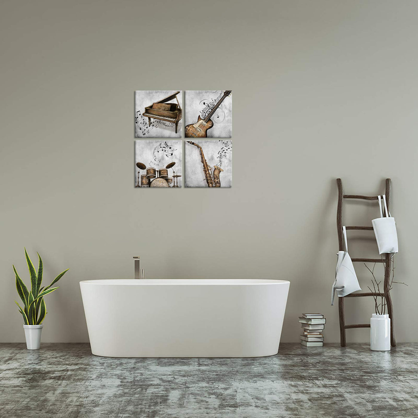 - Q: What themes are represented in the LoveHouse Music Canvas Wall Art? A: The artwork features musical themes, including instruments like guitars, pianos, saxophones, and drums, making it ideal for music lovers.