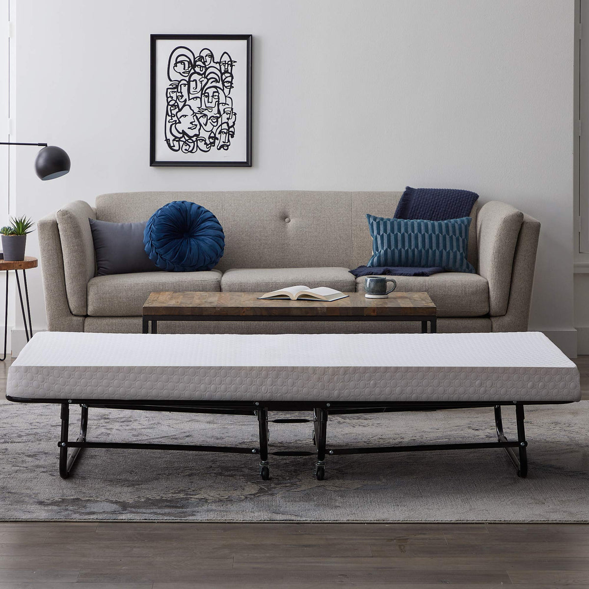 - Q: How comfortable is the mattress on the rollaway bed? A: The mattress features a four-inch design with one inch of memory foam and three inches of support foam, providing a soft yet supportive sleeping surface.