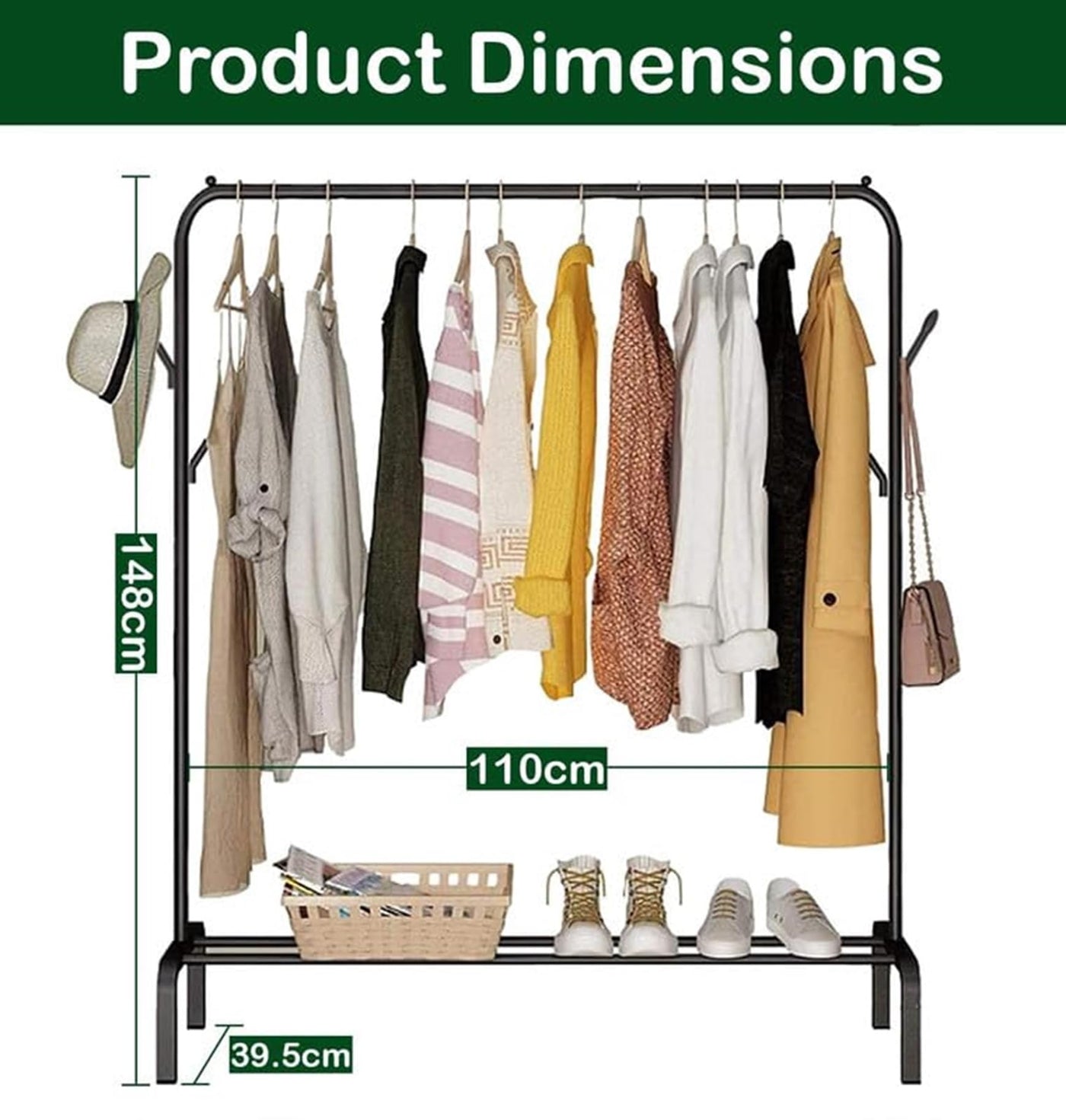 Lukzer Versatile Cloth Stand: Freestanding Metal Garment Rack With Bottom Shelves And Coat Hanger Perfect Storage Organizer (Bl