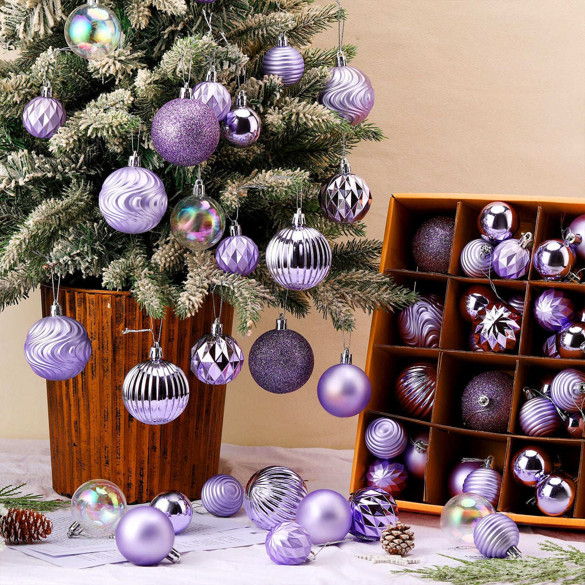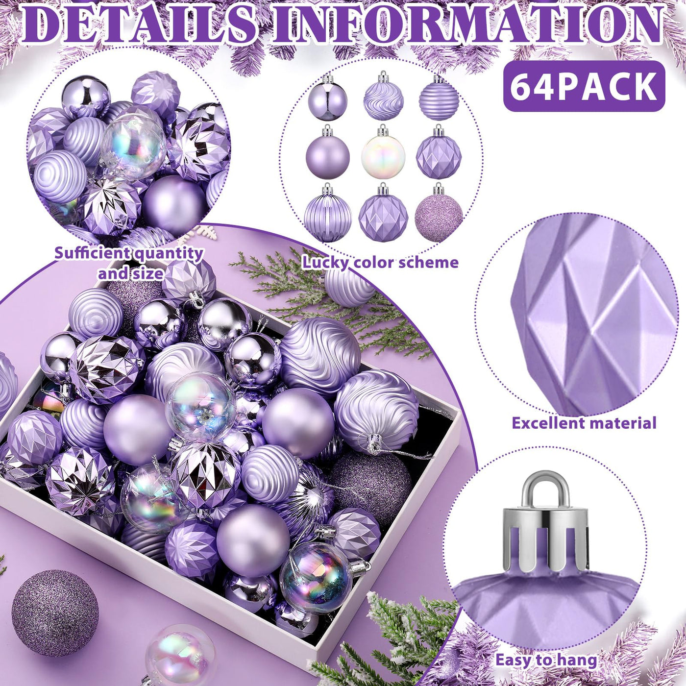 Lunmon 64 Pcs Lilac Purple Christmas Ball Ornaments Lavender Purple Christmas Ornaments Shatterproof Xmas Tree Decorations Set 1