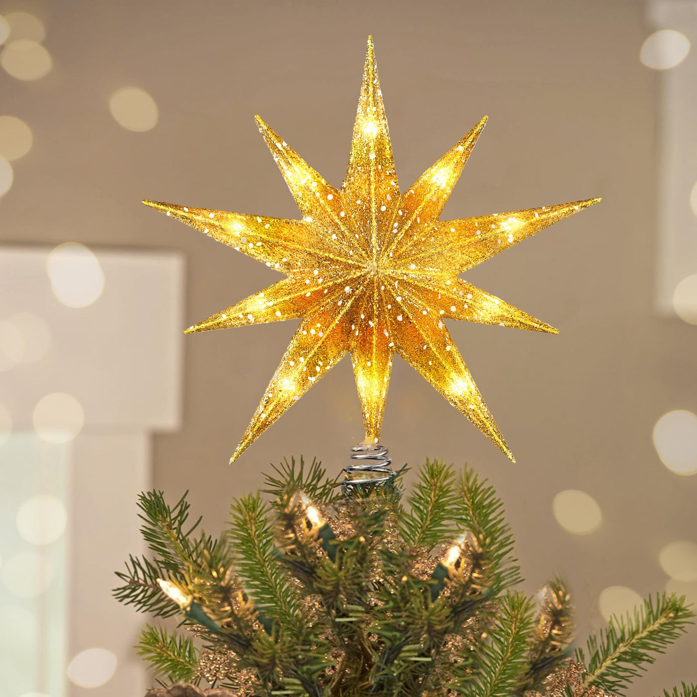 Luxspire Christmas Tree Topper, Lighted Star Tree Topper with USB Plug-in & Remote Control, 9.8 Christmas Tree Star Lights for H