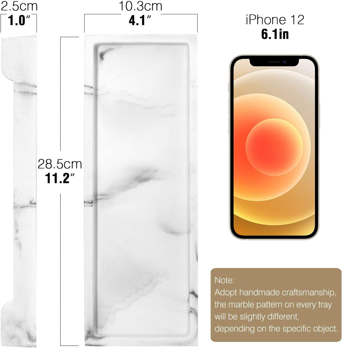 - Q: Is the marble pattern unique on each tray? A: Yes, each faux marble tray is 100% handmade, which means the marble pattern may vary slightly from the picture, making each tray unique.