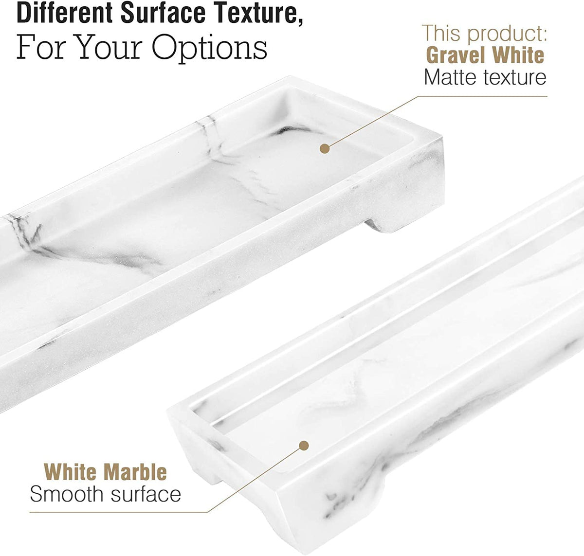- Q: What are the dimensions of the Luxspire Resin Marble Bathroom Tray? A: The Luxspire Resin Marble Bathroom Tray measures 11.22 inches in length, 4.05 inches in width, and 0.98 inches in height.