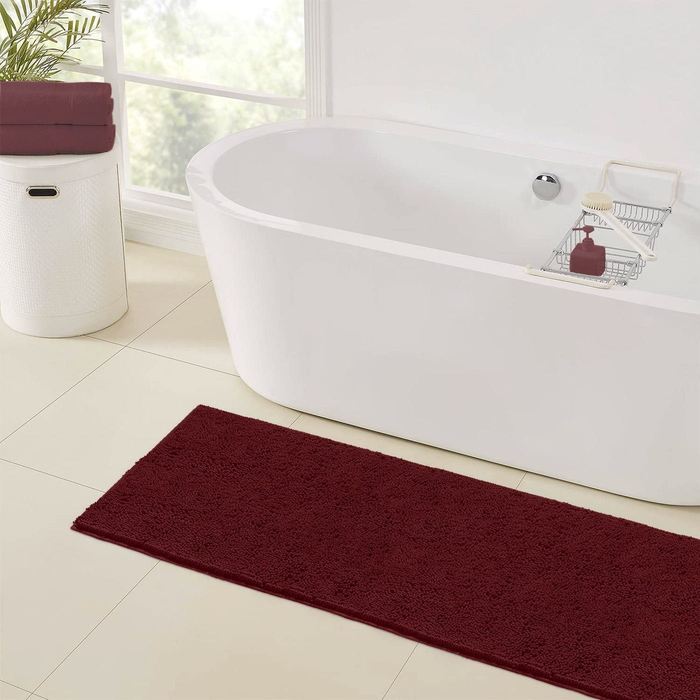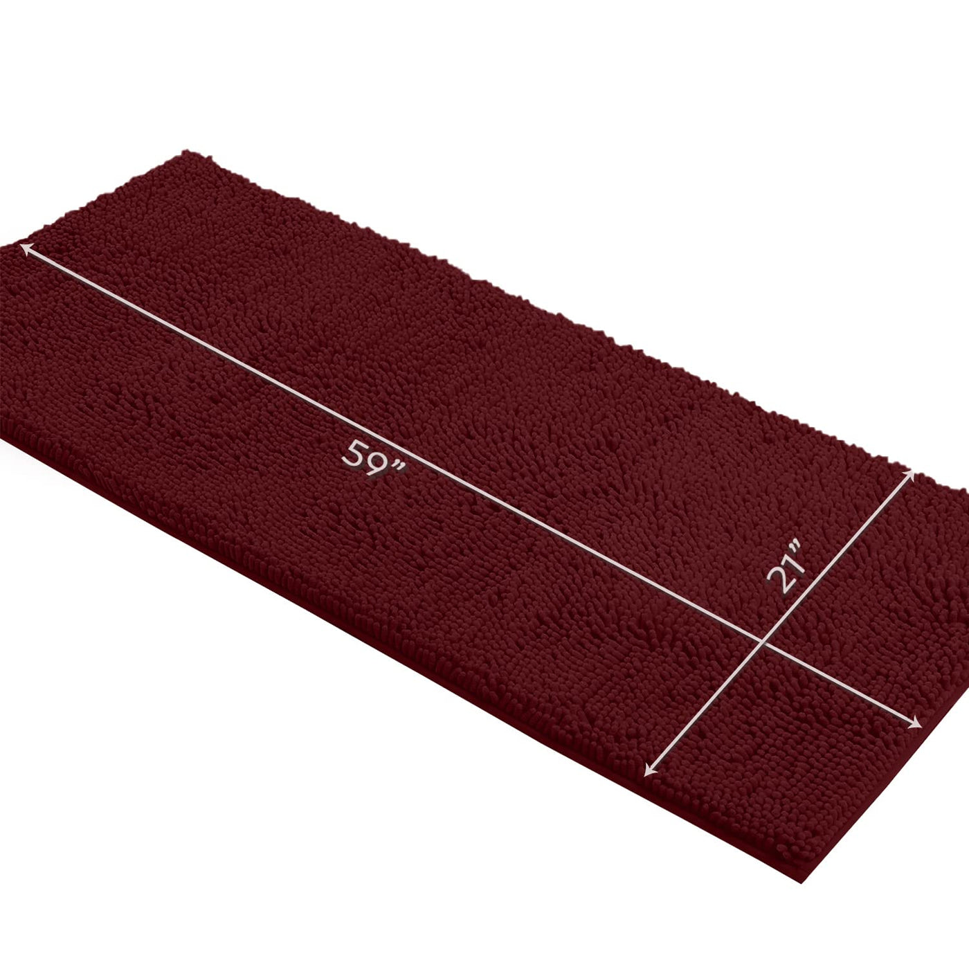 LuxUrux Plush Bath Mat: 1'' Chenille Microfiber Super Absorbent Shaggy Rug (21x59 Burgundy) - Machine Wash & Dry Style