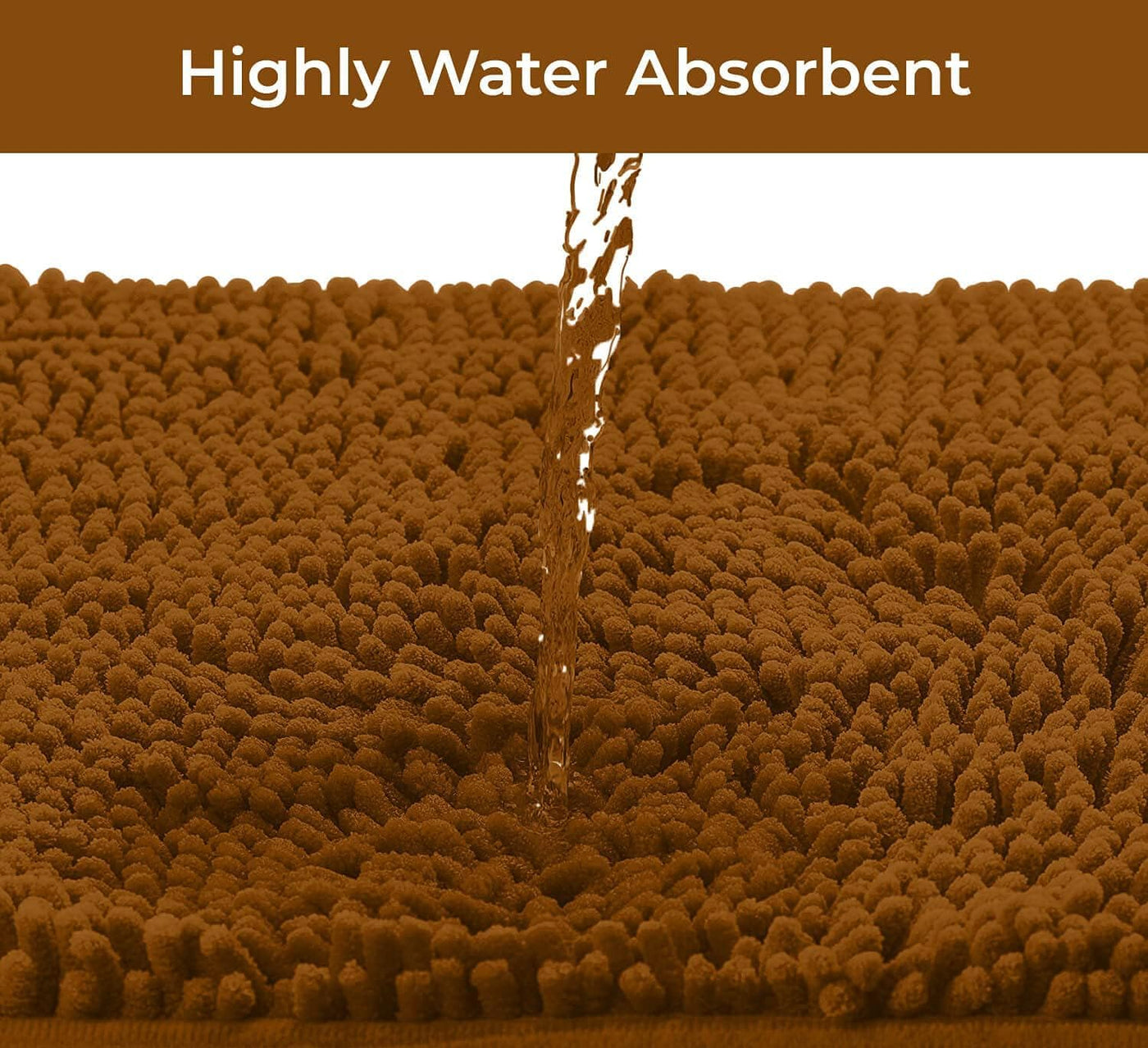 Luxury Chenille Bathroom Rugs - 2-Piece Set, Soft Plush Anti-Slip Bath Rug + U-Shaped Toilet Mat, Microfiber Shaggy Carpet, Supe