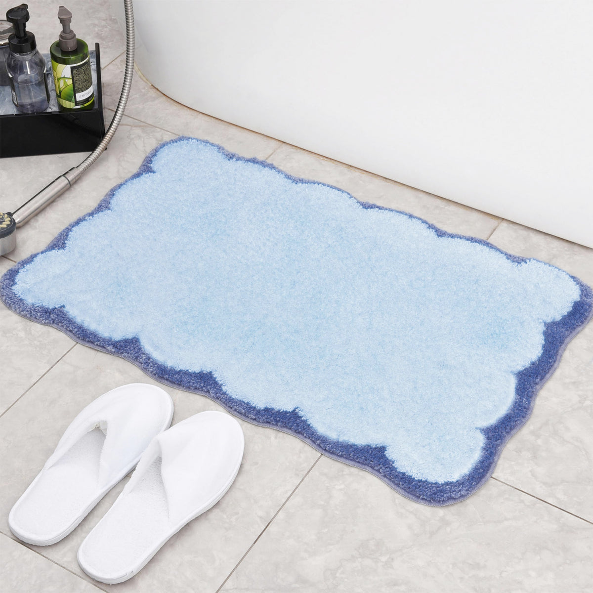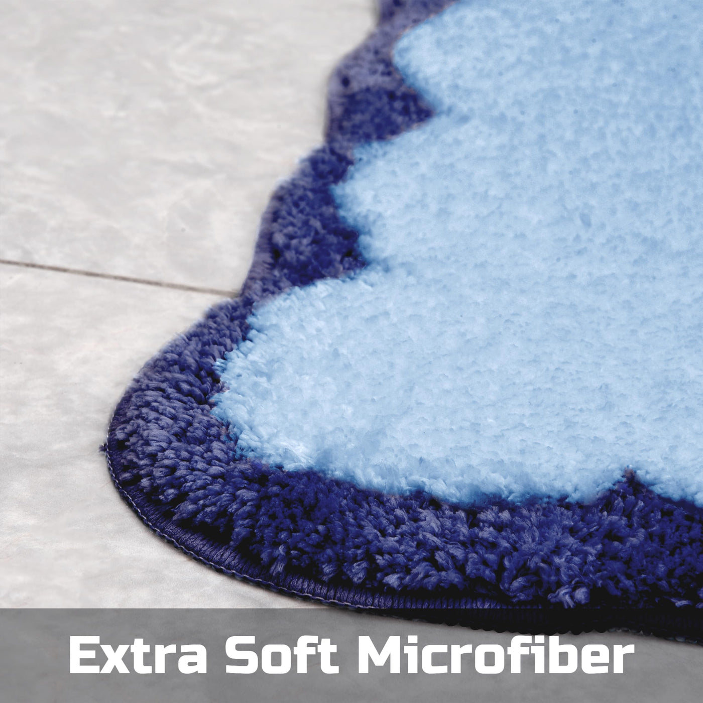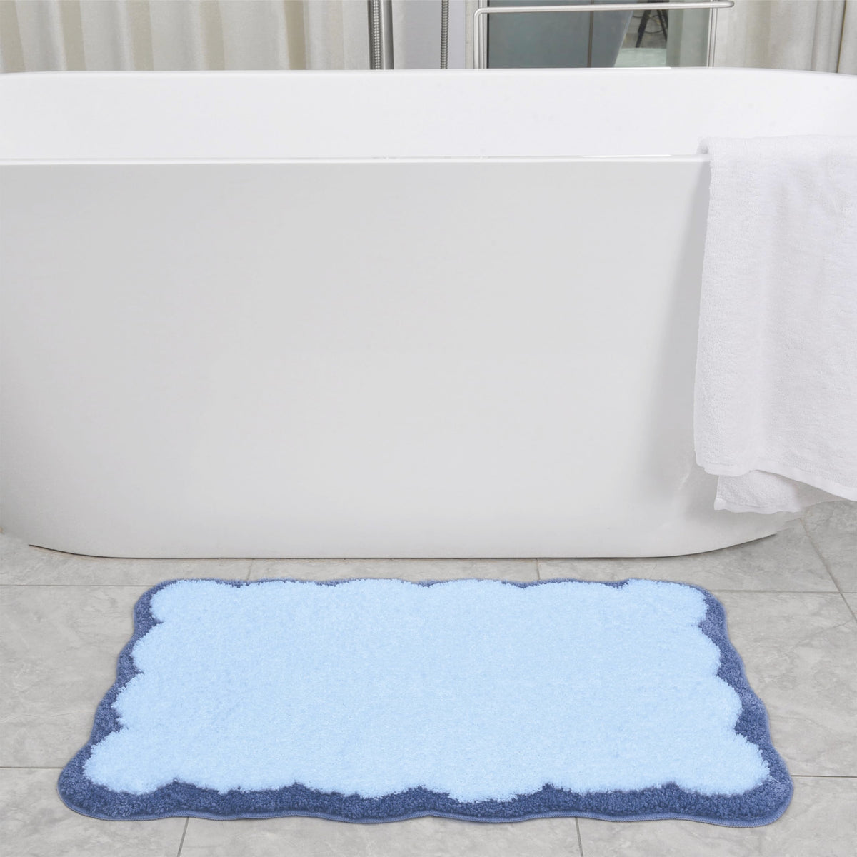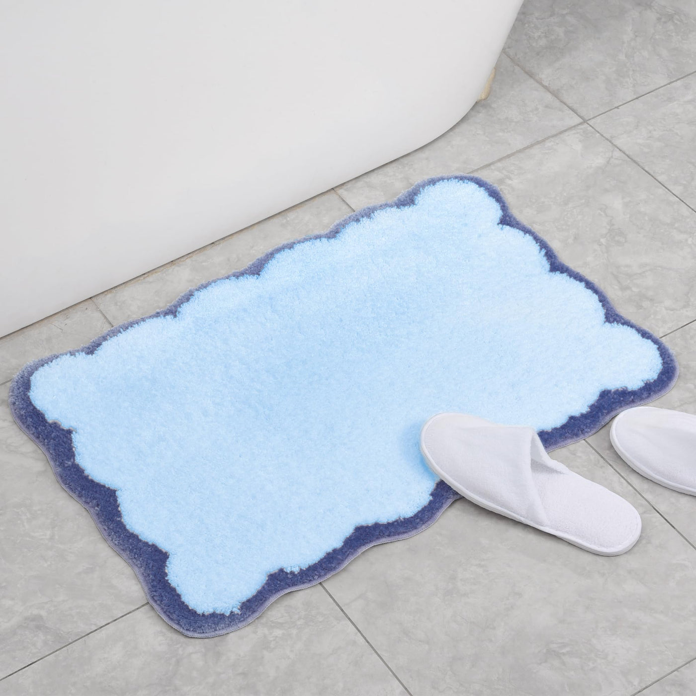 Luxury Microfiber Bathroom Rugs, Navy Scalloped Piping Blue Bath Rug Cute Aesthetic Coastal Nautical Bath Mat For Bathroom, Tub,